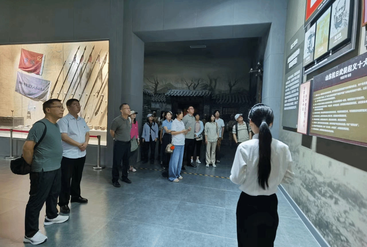 在庄严肃穆的氛围中,全体教职工怀着崇敬的心情参观了大峰山革命历史纪念馆。一件件历经战火洗礼的珍贵文物、一幅幅定格历史瞬间的泛黄照片、一段段感人至深的革命故事,生动再现了革命战争年代艰苦卓绝的斗争历程和共产党人坚定的理想信念、无畏的牺牲精神。在中共长清县委旧址、八路军山东纵队第六支队旧址等历史遗迹前,大家驻足凝视,仿佛穿越时空,触摸到那段烽火连天的峥嵘岁月,深刻感悟到“信仰如山、一心为民、不怕牺牲、勇往直前”的大峰山精神。