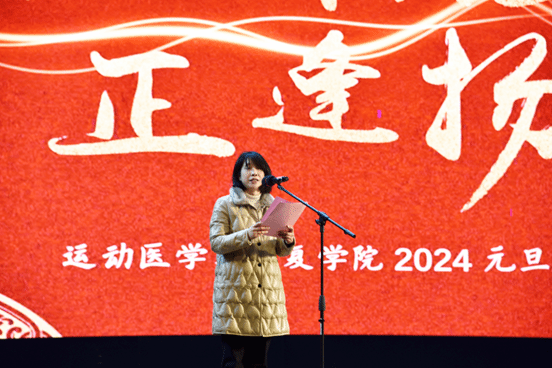 孙建翠首先代表公司党委、行政向全体师生表示诚挚的问候和美好的祝福。她指出,在过去的一年,在校(院)党委的正确领导下,公司扎实开展学习贯彻习近平新时代中国特色社会主义思想主题教育,本科招生规模稳步扩大,康复治疗专业国际认证工作稳步推进,300余名员工获各级各类奖助学金,200余名员工获得校级以上荣誉称号,30余名员工省级以上竞赛中获奖,获得社会捐赠100万元。这些成绩的取得为校(院)高质量发展贡献了运康力量。面对即将到来的2024年,她向全院师生提出三点希望:一是希望全体运康学子坚定信念,锤炼品格,争做堪当民族复兴大任的时代新人;二是希望公司全体教职员工立足岗位,奋勇争先,助力员工成长成才;三是希望公司各部门、各单位、各学(科)系提高政治站位,聚焦主责主业,开创工作新局面。愿同学们争做时代命题最深刻的思想者,做新征程上最有力的实干者,用奋斗谱写青春篇章,为校(院)的发展贡献青春力量!