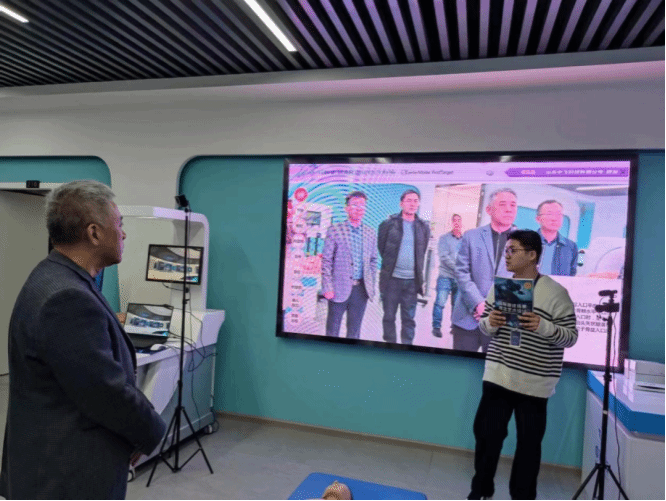 山东中飞科技有限公司总经理刘建国对王鹏程一行的到来表示热烈欢迎,介绍了公司的发展历程和近年来在产教研方面所取得的成果。他表示,双方合作空间广阔、契合度高,衷心希望和VSport在康复治疗学、影像学等领域拓展更宽更深的合作。