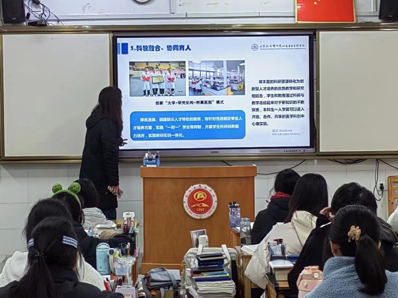 寒假期间,我回到高中母校宣讲。看到那些活泼可爱的学弟学妹对大学美好的憧憬与向往,我仿佛看到了曾经的自己。我结合自己的实际感受,向大家分享了自己的老员工活,重点介绍山一大的办学理念。同时鼓励大家珍惜高中学习生活,关心自己的身体健康,保持自律,不负韶华,我们相约圆梦山一大,一起向未来,为人类的健康贡献自己的一份力量。