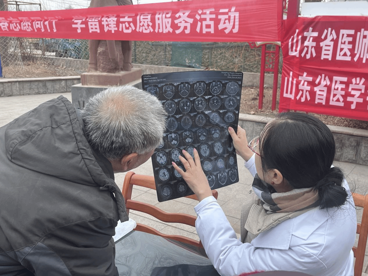 义诊现场,康复医学系主任、康复治疗专业负责人孟宪国教授与来自附属省立医院、第二附属医院、附属眼科医院的专家团队为当地民众进行健康义诊。对前来问诊的神经康复、肌肉骨骼康复、肿瘤康复类等患者,孟宪国详细询问既往病史、查阅检查报告、记录相关病情,为每位问诊居民提供个体化诊疗建议,受到当地群众的广泛好评。“岱下之翼”青年志愿者服务队队员为前来问诊的居民量血压、测血糖,现场分发常见病、多发病的预防诊治宣传页等,受到社区居民的热烈欢迎。