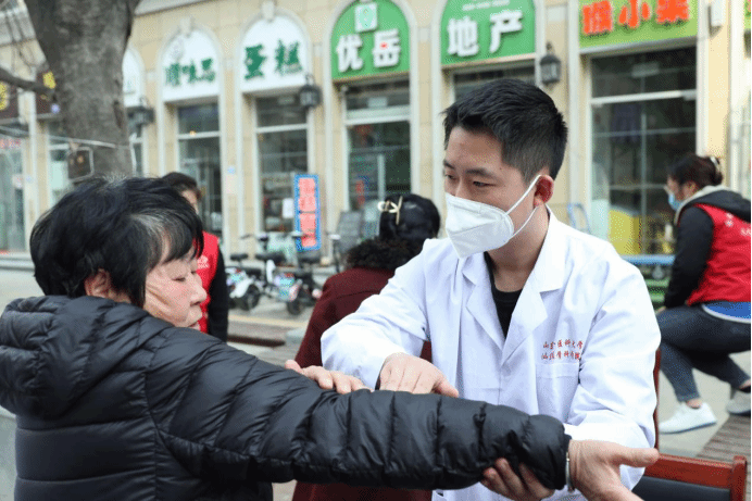 活动现场,公司实验中心主任、教工党支部书记董军、物理治疗教研室主任张洁、作业治疗教研室副主任于学美、教工党支部副书记阴其谱等专家身体力行,为社区内骨科、运动损伤、神经康复类患者进行义诊,他们仔细询问患者发病情况,为患者提供治疗建议。员工志愿者在社区公示栏处张贴宣传标语,现场分发常见病、多发病的预防诊治宣传页。面对咨询问诊的群众,师生志愿者详细询问居民的身体状况、细致检查、耐心讲解,根据每个人的身体状况差异,为每位问诊居民提供了个体化诊疗建议,让社区居民群众在家门口就能享受到优质、便捷、高效的医疗服务。