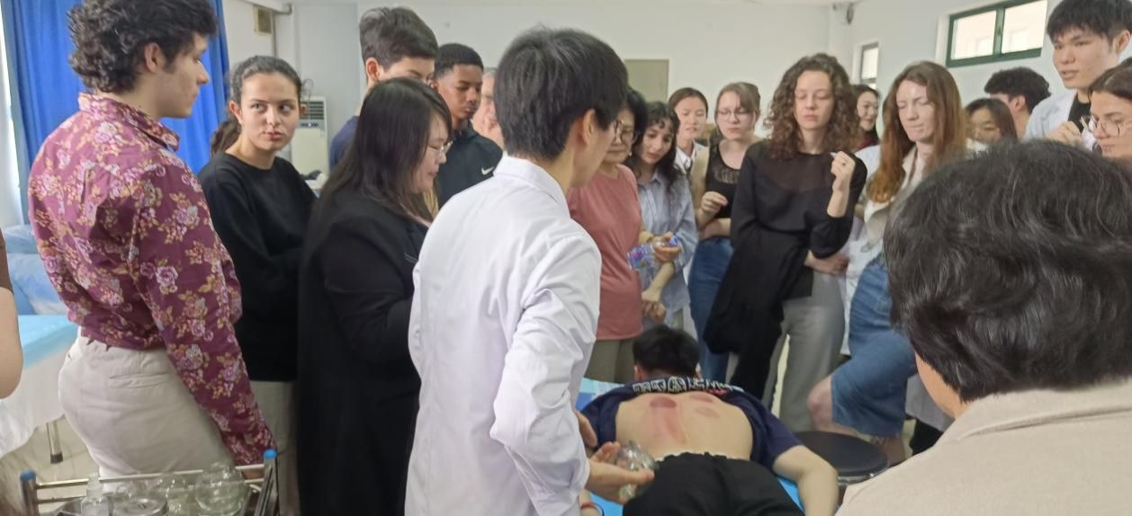 山东省名中医、公司传统康复教研室主任王红艳教授通过课堂教学和现场操作,多形式、多方位、多元化地向员工们展现了传统康复技术,包括针灸、拔火罐、耳穴等中医治疗技术的演示与体验。王红艳向法国青少年展示了针灸、拔火罐、耳穴等传统康复技术全过程。同学们初次亲眼见证了传统康复技术的疗效,亲身感受中医文化的神奇魅力。在操作展示过后,法国员工们客串了一次病模,他们分别体验针灸、耳穴等。体验过后,员工们纷纷表示,通过亲身体验,觉得身体非常舒服,也非常的不可思议,对于传统康复的治疗手法非常认可。
