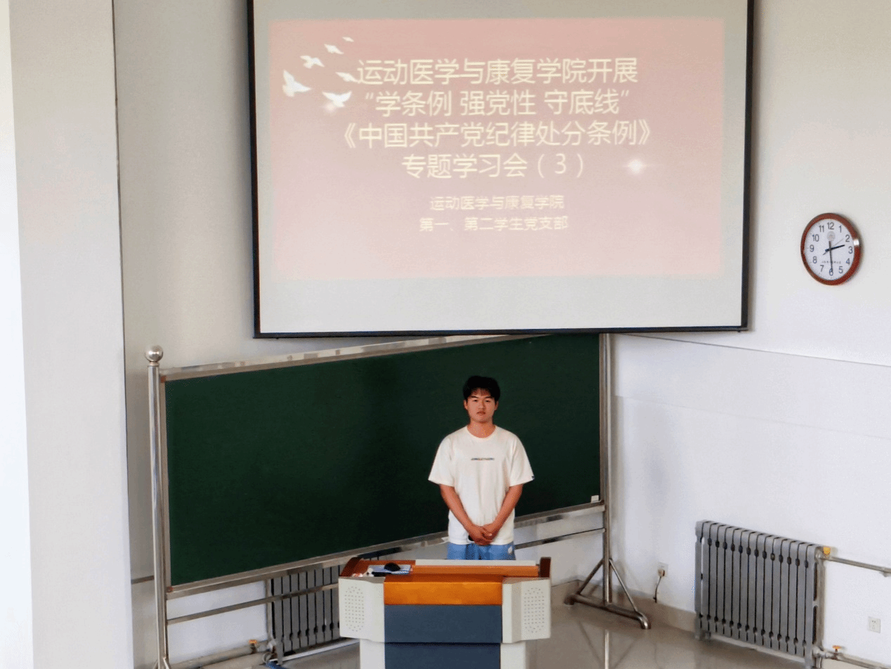 2021级康复治疗学OT方向本科3班领学人纪待谦以“学条例 强党性 守底线”为主题带领大家集体学习《中国共产党纪律处分条例》。《中国共产党纪律处分条例》对于加强党的建设、维护党的纪律具有极其重要的意义。作为党员,我们必须严格遵守党的纪律,自觉维护党的团结统一和纯洁性。《中国共产党纪律处分条例》规定了一系列纪律要求,包括政治纪律、组织纪律、廉洁纪律等方面。这些规定既是对党员的约束,也是对党员的保护。只有严格遵守党的纪律,才能确保我们的行为符合党的要求,维护党的形象和利益。同时,我们也要积极宣传和执行《中国共产党纪律处分条例》,营造风清气正的政治生态。对于违反党纪的行为,我们要坚决予以反对和纠正,让党纪成为不可触碰的高压线。让我们共同努力,严格遵守《中国共产党纪律处分条例》,为推进全面从严治党、建设廉洁党作出积极贡献。