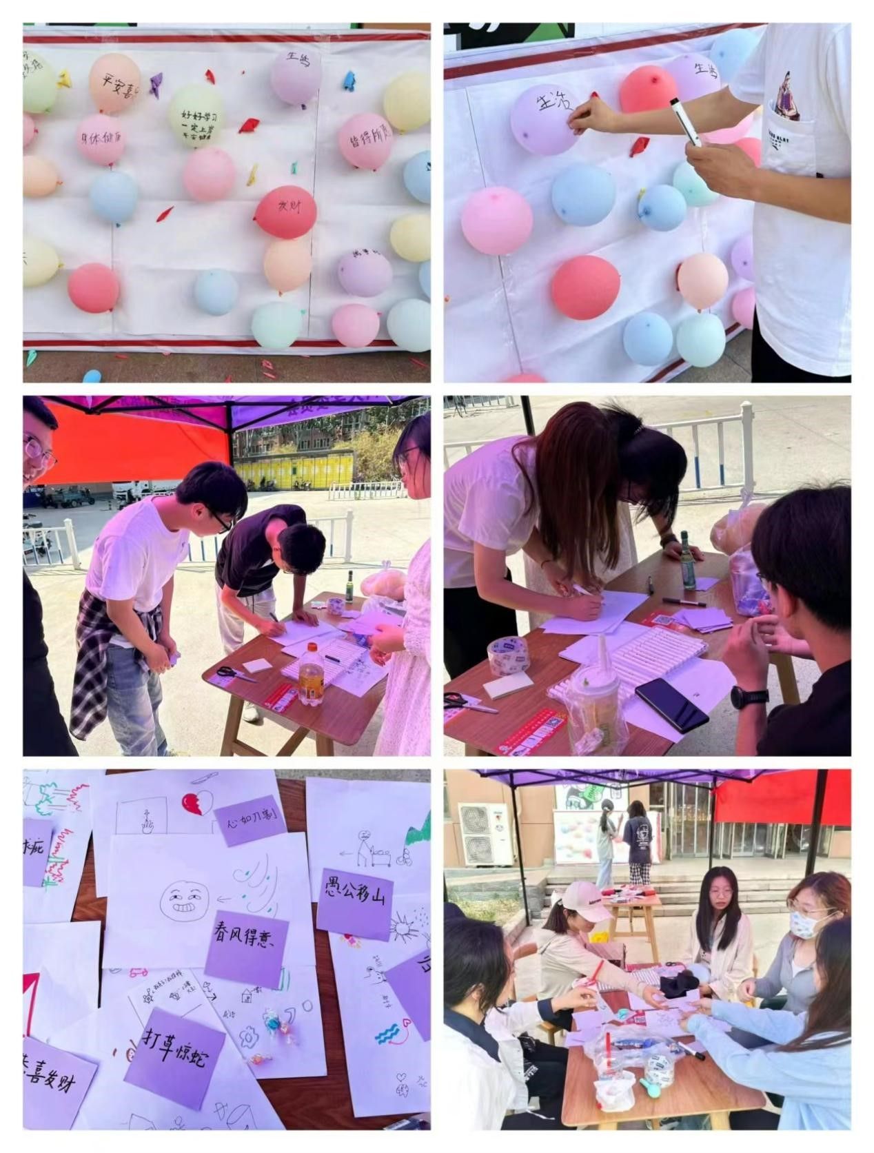 活动内容包括“书写心愿,释放烦恼”气球展板活动、“灵魂画手争霸赛”你画我猜活动以及“在无我里寻找自我”不能说“我”活动。活动举办期间,公司心理协会成员积极引导同学们参加活动,耐心为每一位参加活动的同学介绍活动规则,帮助同学们在活动中舒缓焦虑,释放情绪。活动结束后,成员们还为每一位参加活动的同学准备了丰厚的赛后奖励。