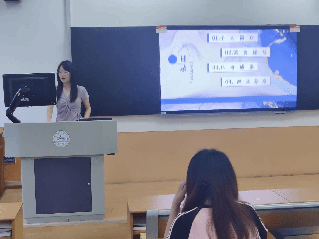 于丰宁同学从职业规划、学习规划实施、课外竞赛三个方面,结合自己的学习经历和成长故事,分享了个人感受和成功经验。她强调,首先要了解自己、认知自己,结合自身情况制定明确目标;其次要用合理的方式去达成目标;最后针对大学英语学习分享了具体方法:重视课前预习;多参与课堂互动和交流,做到有问必答;利用好学习资源,充分熟练掌握课本知识,重复多次读课本,利用课本目录整合知识点;学习方式方法要灵活,学会通过思维导图构建知识框架等。