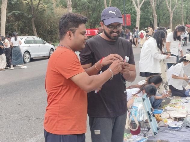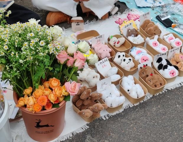活动现场,校园的街道被五彩斑斓的摊位装点得格外热闹。摊主们纷纷将要出售的书籍、服饰、手工艺品以及各类学习用品等各类物品摆放在自己的摊位上,琳琅满目的商品吸引了众多师生的目光。摊主们耐心地为驻足的同学介绍,分享物品背后的故事和回忆。这些物品虽已不再使用,但每一件都承载着他们的老员工活和青春记忆。