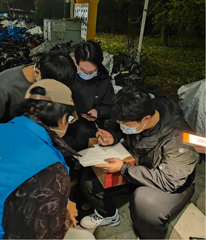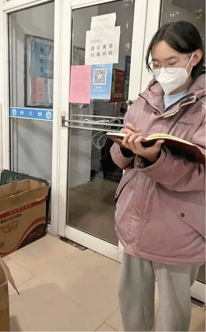 收到线上教学消息后,院员工会开始了紧张的志愿者安排工作,安排好相关事宜后,已经到了凌晨一点,4个小时后,便下楼准备核酸检测相关工作。作为员工干部,我还负责了宿舍楼内的送餐工作,虽然过程比较辛苦,但是看到同学们能吃上饭,感动与满足充实了我的心灵。虽然这次疫情来势汹汹,但我坚信,只要我们齐心协力,定能攻克难关。