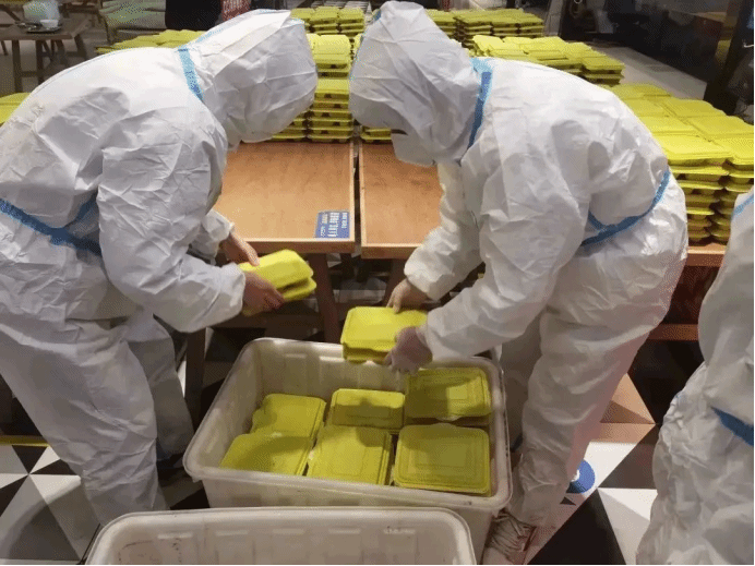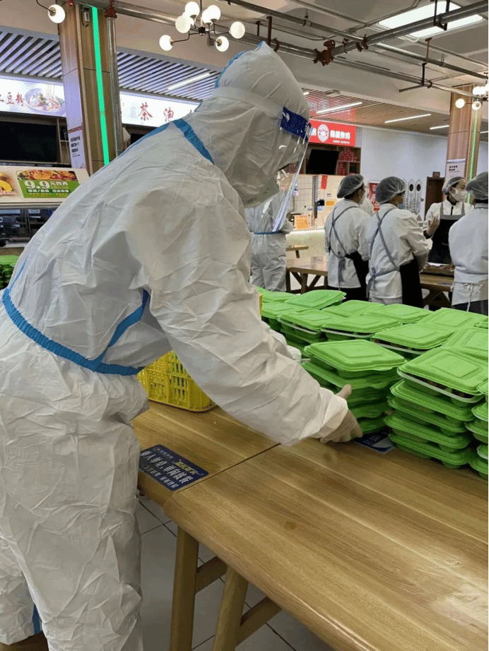 每天早上做完核酸,6:30准时在松竹园校团委办公室门前集合,穿好防护服后前往各个餐厅。搬运饭菜是最基本的工作,真正考验人的是组织和协调。在学长学姐的带领下,我们分工明确,一人在餐厅里清点数量,一人在餐厅外找车送餐,一人在宿舍楼外组织将饭菜送到同学们手中,我们一直尽自己最大的能力。当我奉献自己一份力量的时候,心里会觉得很幸福,终于为同学们做了一点力所能及的事情,找到了自己的价值。这次志愿服务使我学到了许多东西,不知不觉成长起来。关爱他人,做出自己应有的贡献,自己的生命也会焕发出光彩。
