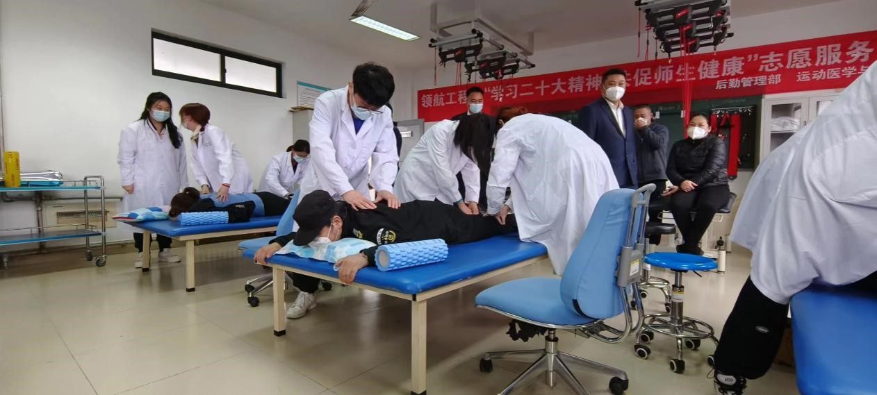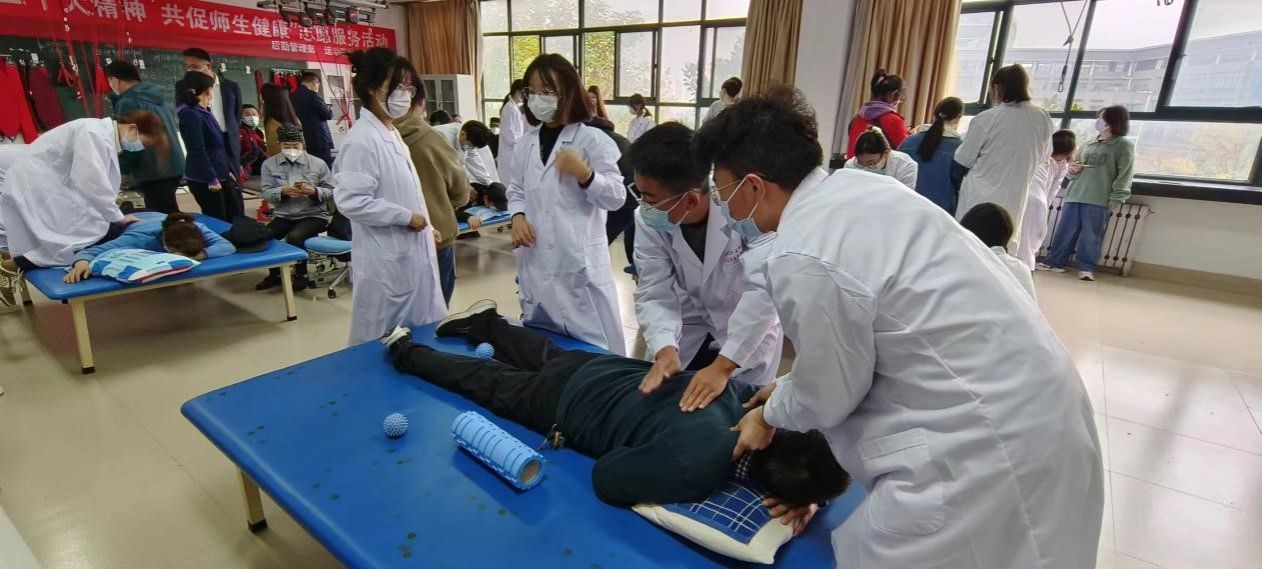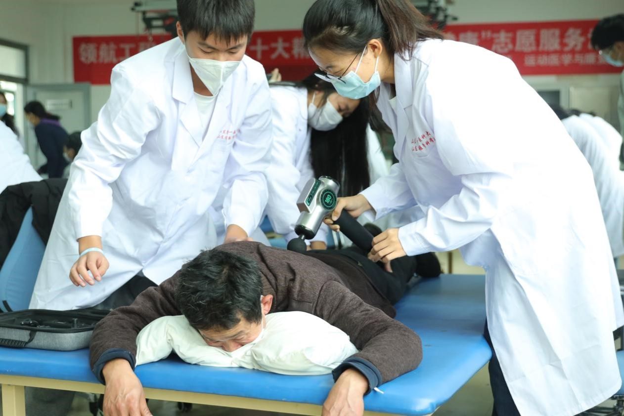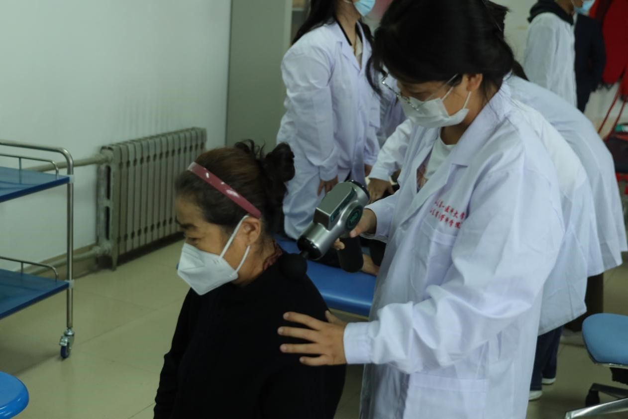 同学们为表感恩之心,用自己所学的专业技能为他们缓解压力,放松身心。活动现场,同学们与后勤服务人员自由组队,采用筋膜枪、滚轮、泡沫轴等康复治疗方法帮他们按摩治疗,并耐心回答他们提出的问题,现场气氛热烈。同学们的专业手法和一丝不苟的态度得到后勤服务人员的好评与赞扬,“这次活动太好了,经同学们一推拿,浑身轻松了,干劲儿更足了”。