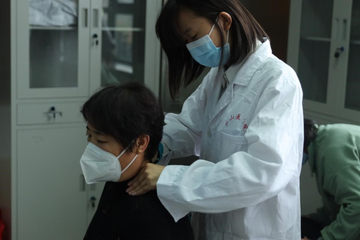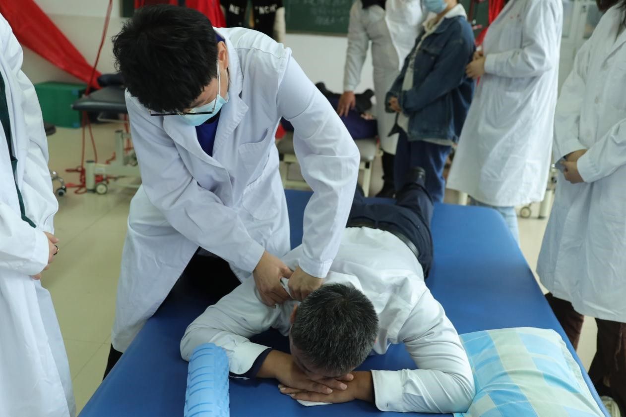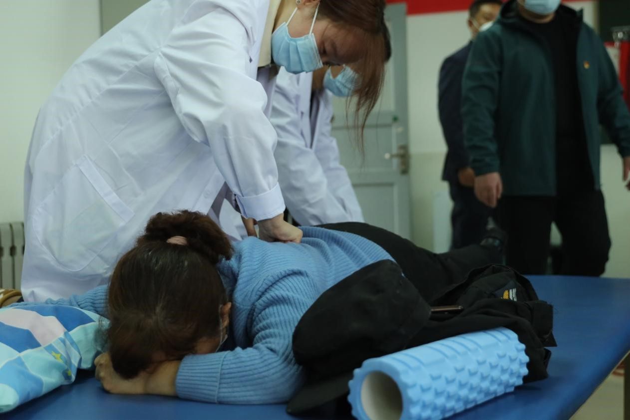 同学们为表感恩之心,用自己所学的专业技能为他们缓解压力,放松身心。活动现场,同学们与后勤服务人员自由组队,采用筋膜枪、滚轮、泡沫轴等康复治疗方法帮他们按摩治疗,并耐心回答他们提出的问题,现场气氛热烈。同学们的专业手法和一丝不苟的态度得到后勤服务人员的好评与赞扬,“这次活动太好了,经同学们一推拿,浑身轻松了,干劲儿更足了”。