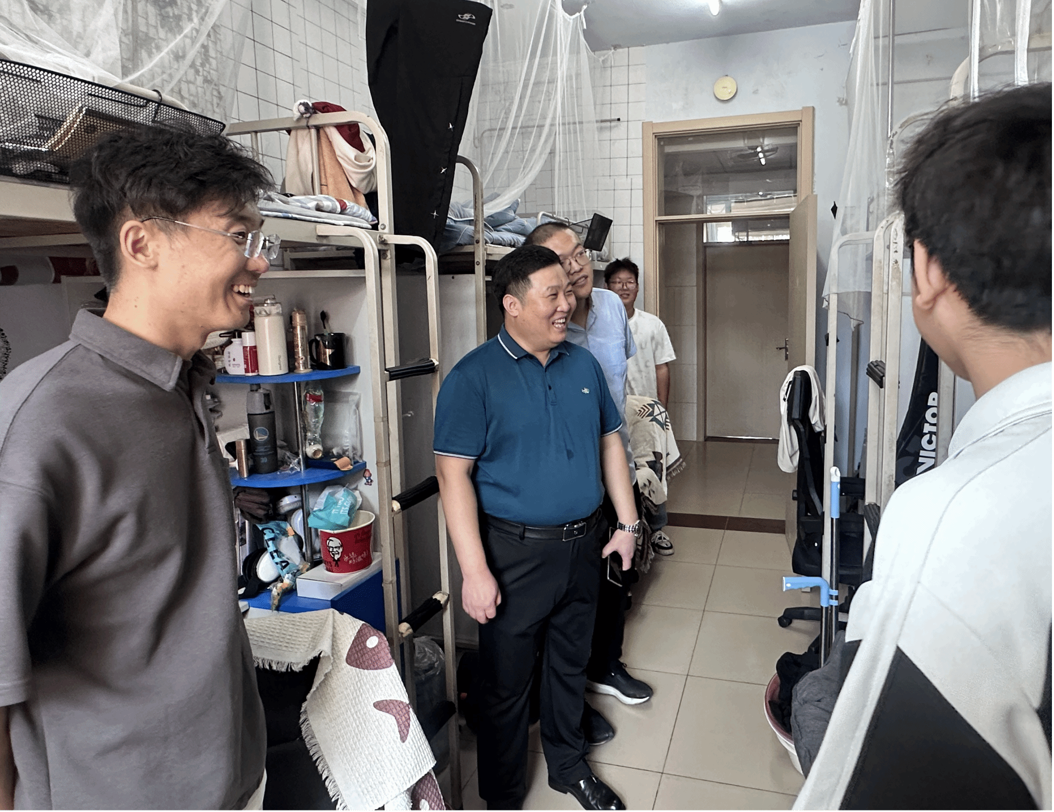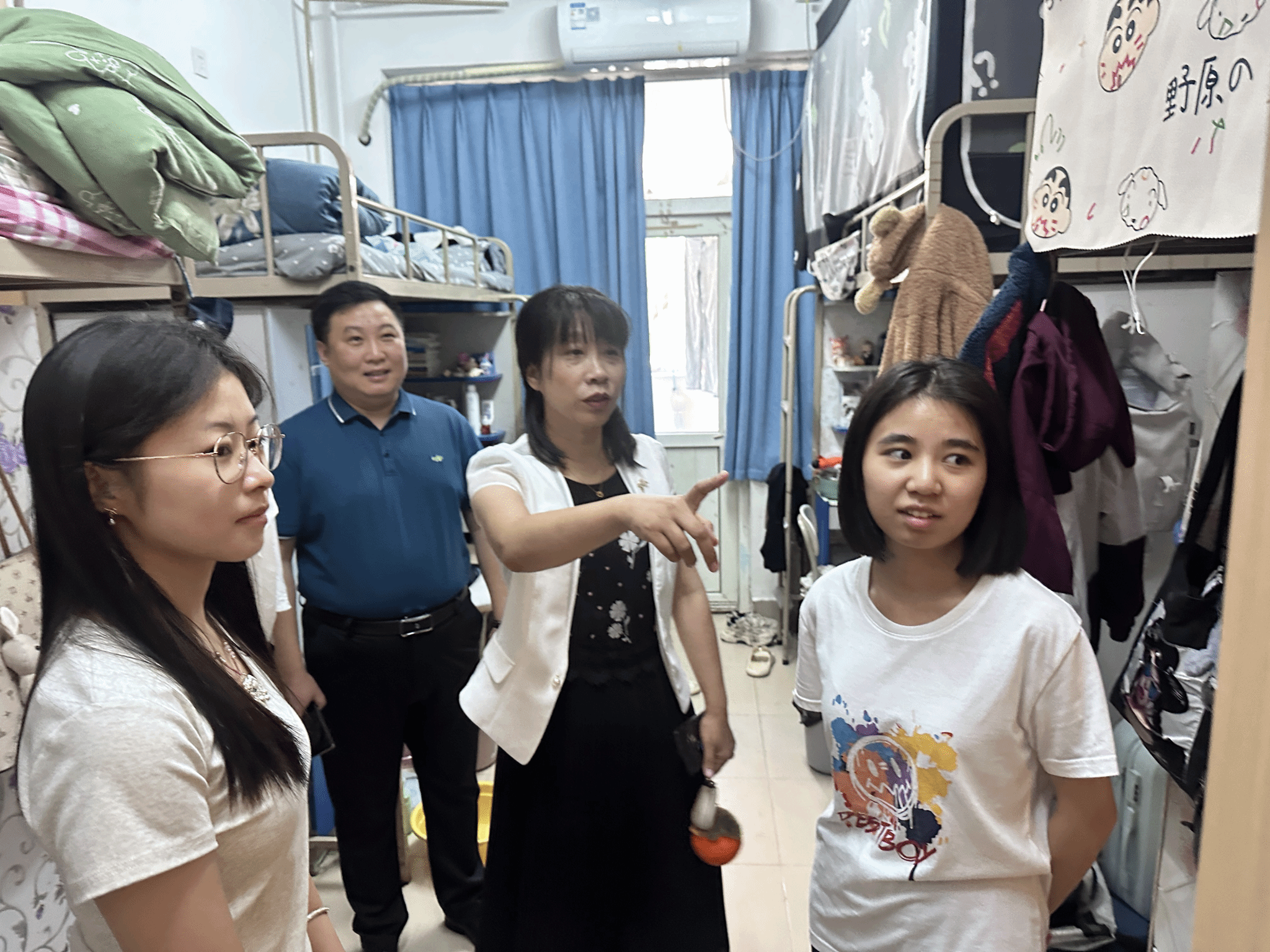 走访中,孙建翠亲切地与同学进行深入交流,对同学们开学返校后的学习状况、生活适应情况等进行全面了解,仔细查看宿舍的基础生活设施。她提醒同学们要提高安全意识,自觉遵守宿舍管理规定和文明公约,严禁在宿舍内使用大功率及违禁电器等,同时鼓励同学们认真学习,团结友爱。同学们在公司老师的关心关爱下倍受鼓舞,纷纷表示将及时调整状态,制定学习计划,迅速适应新学期,以崭新的面貌、良好的状态、乐观的心态迎接新学期。