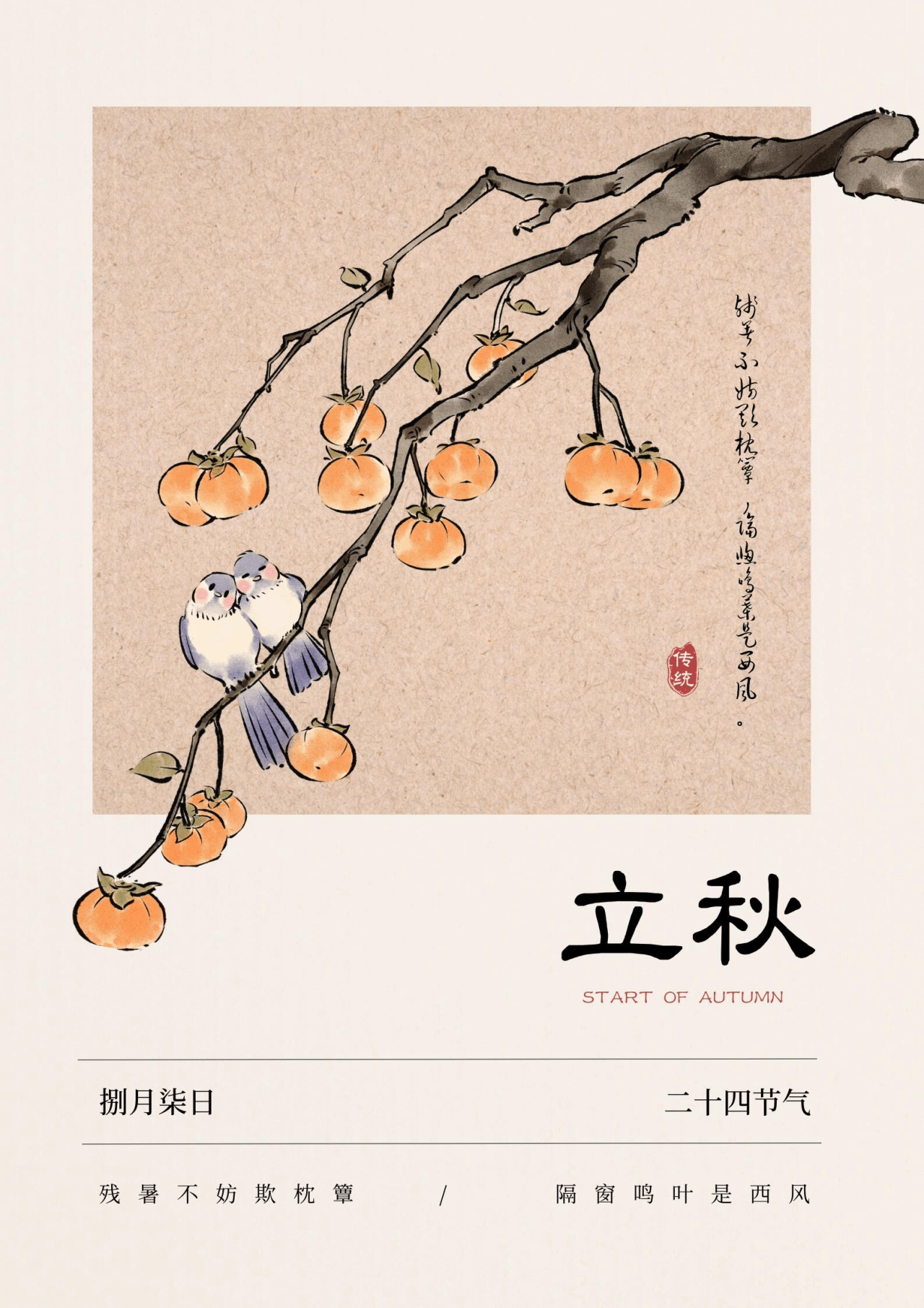 立秋,是"二十四节气"之第十三个节气,也是秋季的起始。斗指西南,太阳达黄经135°,在每年公历8月7、8日或9日。"立",是开始之意;"秋",意为禾谷成熟。立秋与立春、立夏、立冬并称"四立",也是古时"四时八节"之一。