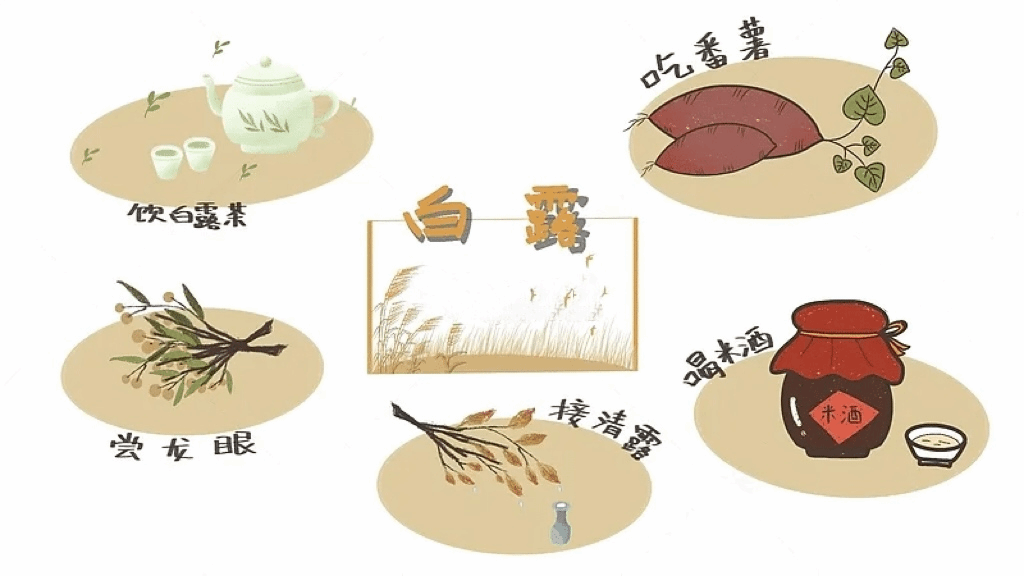 在民间,白露时节有着独特的习俗。例如太湖人会祭禹王,祈求风调雨顺、渔业丰收;福州有“白露必吃龙眼”的传统,认为龙眼有益气补脾等功效;在苏浙一带,人们喜爱喝“白露茶”,此时的茶叶有一种独特甘醇清香味;资兴兴宁等地有酿“白露米酒”的习俗,其味甘甜;苍南、平阳等地民间会采集“十样白”来煨乌骨白毛鸡或鸭子,以滋补身体、去风气;还有些地方认为白露吃番薯可使全年吃番薯丝和番薯丝饭后不发胃酸。