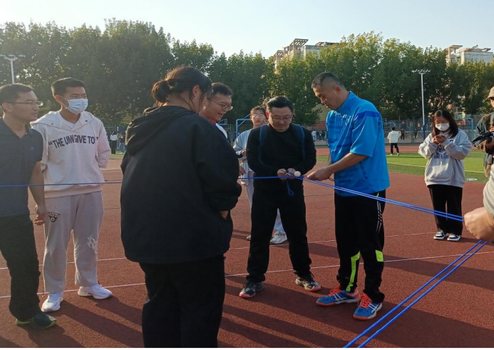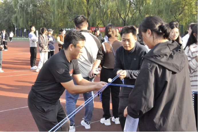 轨道传球,是一个需要团队协作的项目,参赛的师生们都聚精会神地紧握着绳子,盯着小球,屏住呼吸,配合默契。