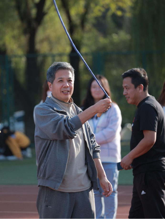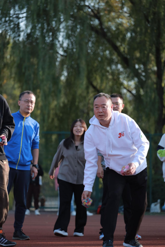活动伊始,VSport体育经理贾庆卫致欢迎词。活动以趣味体育竞技的形式开展。师生们按照报数分组,分成四支队伍,两个队伍同时进行比赛。在员工志愿者的带领下,大家积极参加“欢乐抖球、轨道传球、投壶、一圈到底、跳大绳、沙包投掷、套圈”等游戏。