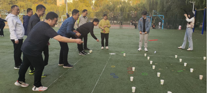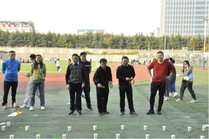 套圈游戏,师生们手拿套圈,准备、瞄准、套圈一系列动作连贯而娴熟,小小的套圈满场纷飞,比赛现场中师生们不断交流经验,调整套圈姿势。大家的热情被妙趣横生的活动一次次点燃,欢笑声、喝彩声、掌声不绝于耳。