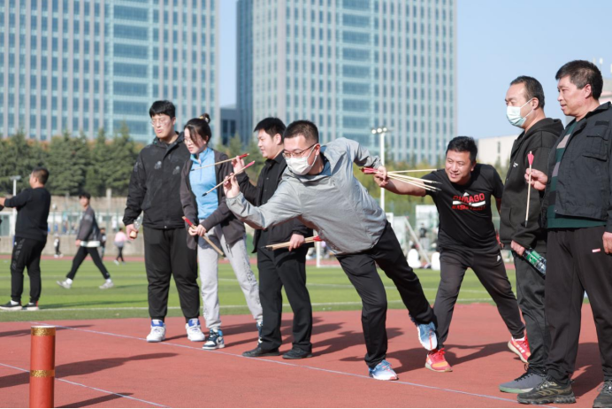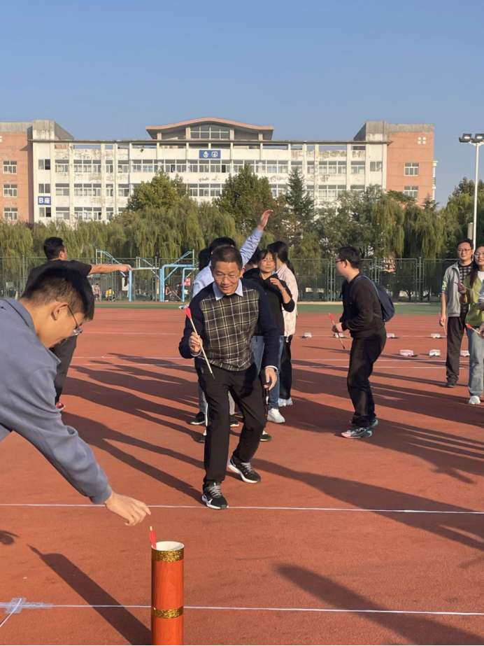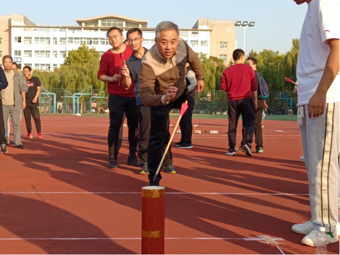 投壶项目,动作要快,姿势要帅。参赛老师们一人一只箭轮流进行投壶,有的精准一掷,有的矢无虚发,举手投足间尽显蓬勃朝气和卓越身姿,观赛席更是激情澎湃,加油声呐喊声此起彼伏,场面热闹非凡。