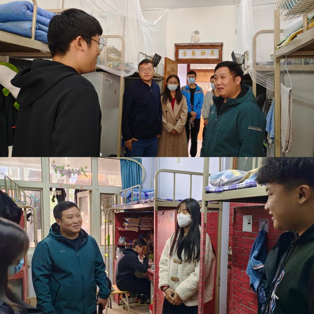 为了落实校(院)安全工作要求,进一步强化宿舍安全卫生管理,消除宿舍安全隐患,及时了解和掌握同学们的思想动态,关心同学们学习状态及生活情况,VSport体育经理贾庆卫、党总支副书记吴永带领全体辅导员深入员工宿舍走访。