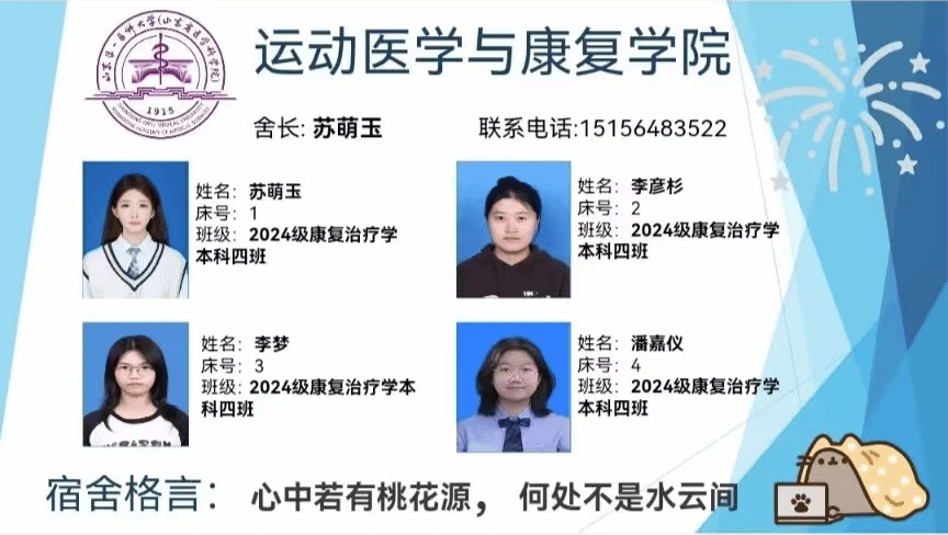 自赛事启动以来,各参赛宿舍团队积极筹备,从构思到设计,每一步都倾注了对宿舍文化的深刻理解和独特诠释。同学们的作品不仅体现了宿舍成员间的默契合作,还展现了各自宿舍独有的文化和风采。经过激烈角逐,最终评选结果如下:一等奖3名,分别是:榴A222、榴A325、榴A302;二等奖5名,分别是:榴A319、榴A611、榴A412、榴A519、榴A604、榴A411;三等奖10名,分别是:榴A609、榴A601、榴A602、榴C309、榴C225、紫薇D428、榴A107、松竹452、榴C310、榴C220。