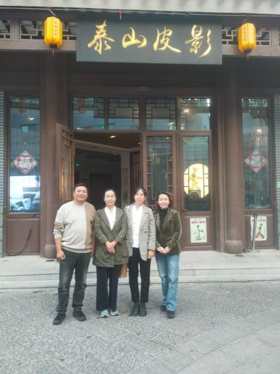 泰山皮影艺术源远流长,其历史可追溯至明代古籍《韬祷机闲评》中的记载,距今已有六百年的辉煌历程。在雄伟的泰山脚下,这项珍贵的民间艺术以匠心独运的精神,传承着中华文化的经典。表演时,需要一个人“脑里想着词儿、嘴里唱着曲儿、手里舞着人儿、脚下踩着锤儿”,相当于五官、四肢、头脑一刻都不能闲着——这就是皮影戏业界中最古老最高超的表演技艺——十不闲,即“皮影独角戏”据国家文化部全国非物质文化遗产普查结果显示,泰山皮影中的“十不闲”皮影戏是全球独一无二的单人皮影戏表演形式,由泰山皮影第六代传承人,现年80岁的范正安老先生坚守一生,完整地传承至今。范氏家族将泰山皮影艺术代代传承,绝无仅有,弥足珍贵!现如今,范正安先生的徒弟们扛起了传承的大旗,活跃在世界各地的皮影舞台之上,一支支技艺娴熟的表演团队成为泰山皮影的中流砥柱。本次接待我们的,即是皮影剧场总负责人、范正安先生之子范维国先生(第七代传承人),他的儿子范方一也于今年夏天收到山东艺术公司的录取通知书,继续家族的皮影艺术传承大业。