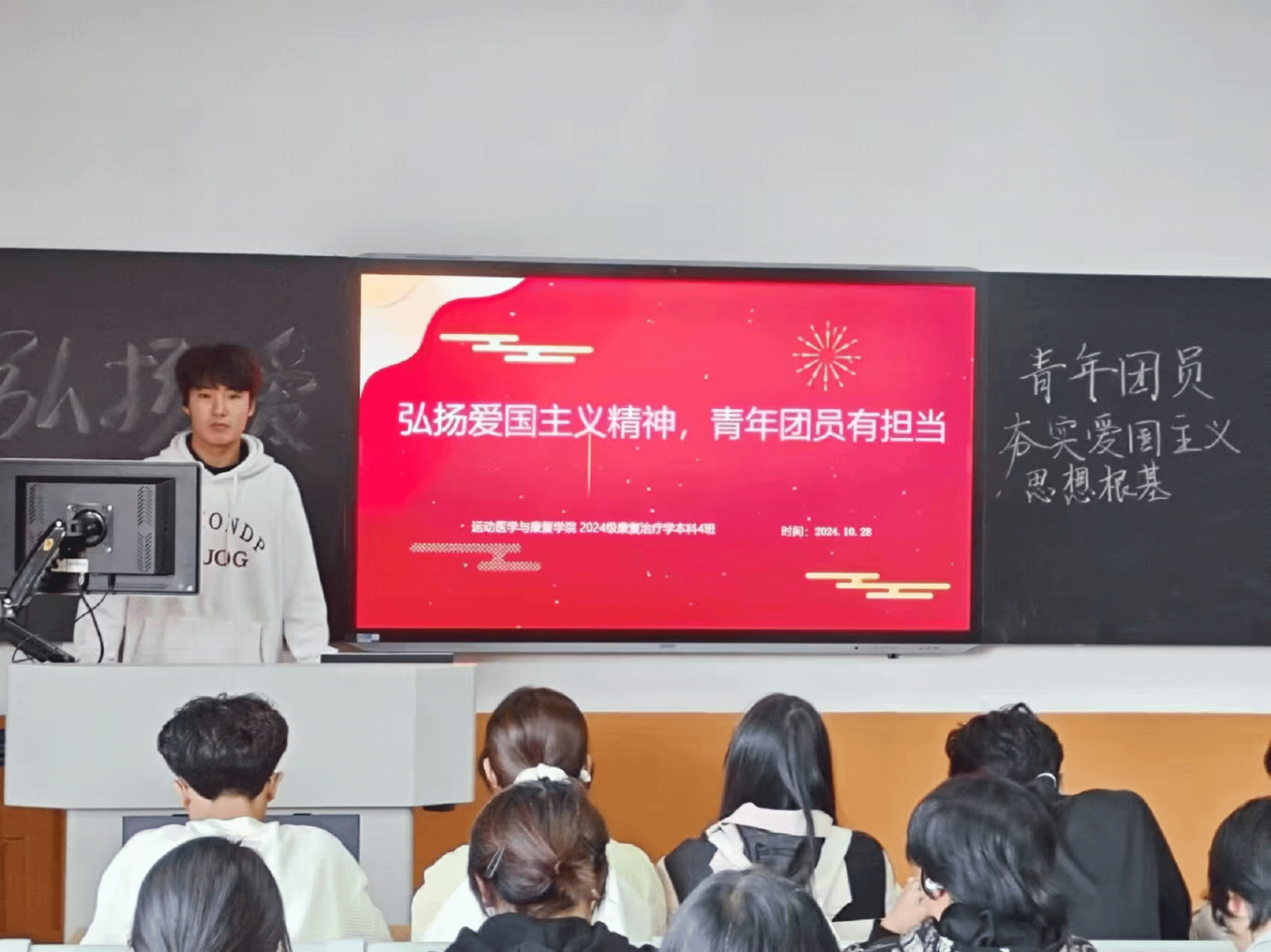 活动伊始,各班团支书通过精心制作的PPT和视频资料,向同学们展示了习近平总书记在不同场合关于弘扬爱国主义精神的重要讲话和论述。从总书记的话语中,同学们深刻感受到了爱国主义是中华民族精神的核心,是团结全国各族人民自强不息、开拓奋进的旗帜,也是实现中华民族伟大复兴的强大精神动力。