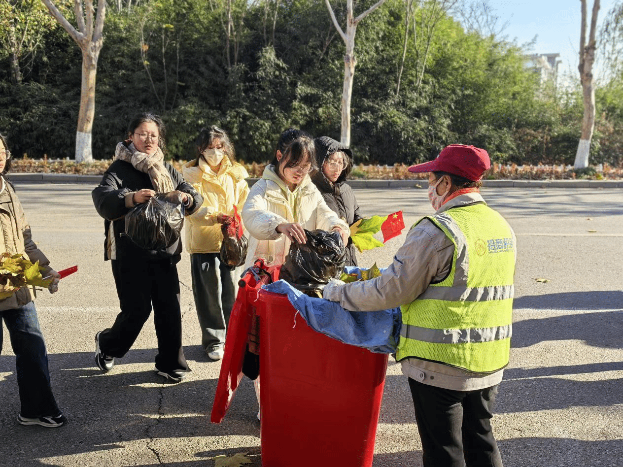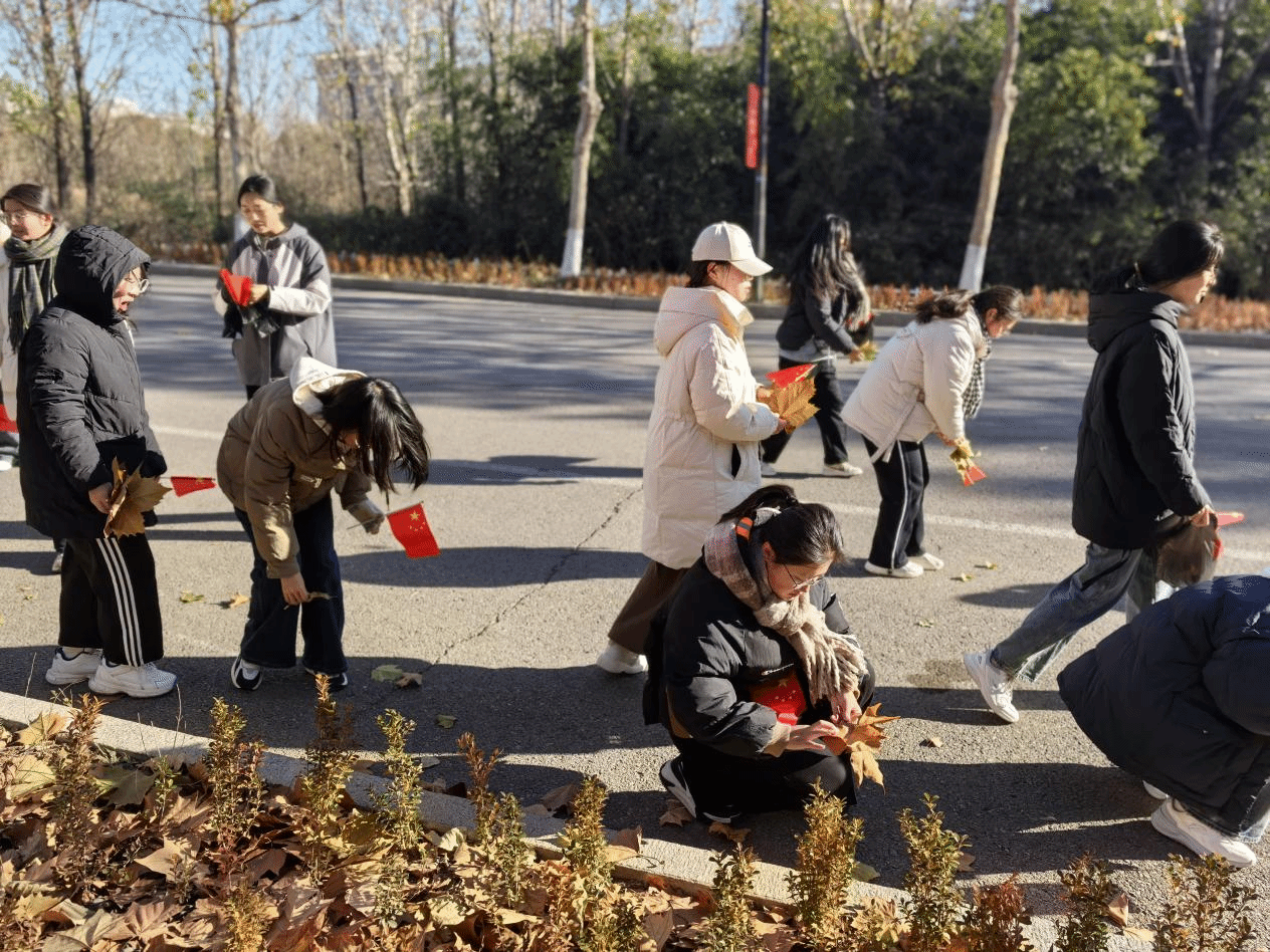 在西环路,同学们分组行动,积极投身到校园卫生清洁活动中。他们手持垃圾袋和工具,拾取垃圾和落叶,每一个弯腰、每一次伸手,都彰显着新时代青年传承先辈精神、积极承担社会责任的决心与风貌,从点滴小事做起,用实际行动守护校园的美丽与整洁,为文明校园建设做出了贡献。