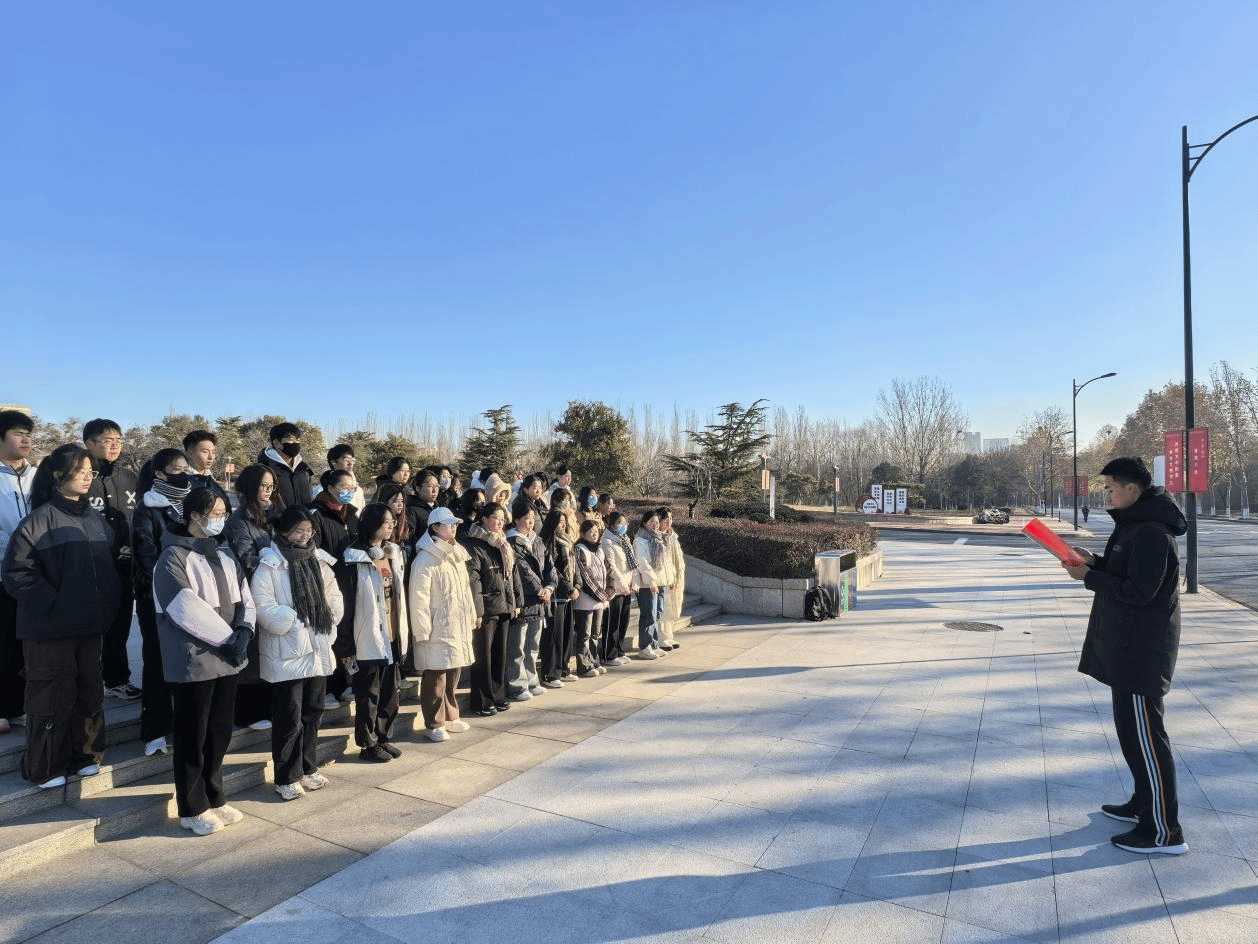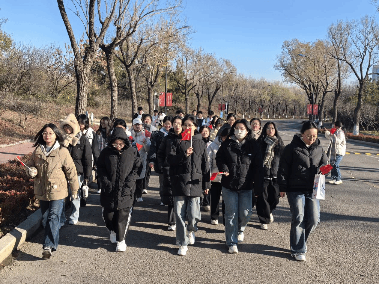 上午 9 点,活动成员在南门(泰山广场南)集合完毕,开幕仪式正式开始。领学人刘文宇同学带领大家回顾了那段峥嵘岁月,学习了“一二·九”员工抗日救亡运动的历史背景和伟大意义。“一二·九”是由青年员工发起的爱国救亡与思想启蒙运动。当时日本侵略加剧,华北危急,青年员工们挺身而出,为唤醒国人爱国意识、激发其斗志做出了不懈努力,他们成为了后人不畏强敌、敢于斗争的榜样。该运动精神内涵丰富且深刻,彰显中华民族自强不息、坚韧不拔的品质,在和平年代,我们仍应传承这种精神,通过认真学习历史、参与社会实践、关注国家发展、勇于担当责任等方式,为国家繁荣富强和民族伟大复兴贡献力量。