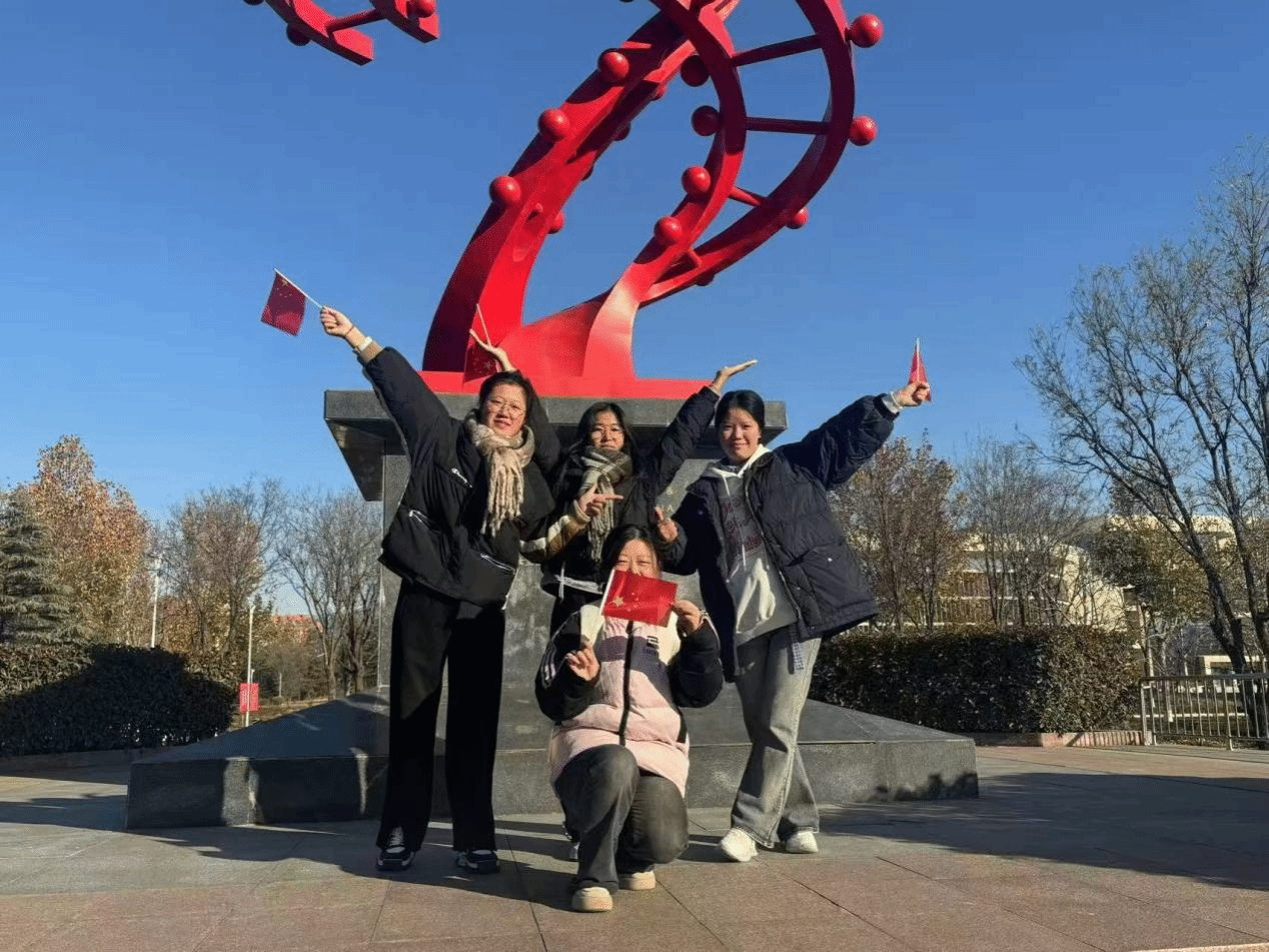 当同学们途径登攀雕塑时,那雕塑仿佛化身为历史的讲述者,静静矗立却又充满力量。在那战火纷飞的年代,青年们以坚定的信念和不屈的意志,努力登攀着救亡图存的高峰。此刻,眼前的雕塑与那段热血历史相互交融,同学们满怀敬意与激动,以雕塑为背景,用镜头定格下这一个个充满意义的瞬间。