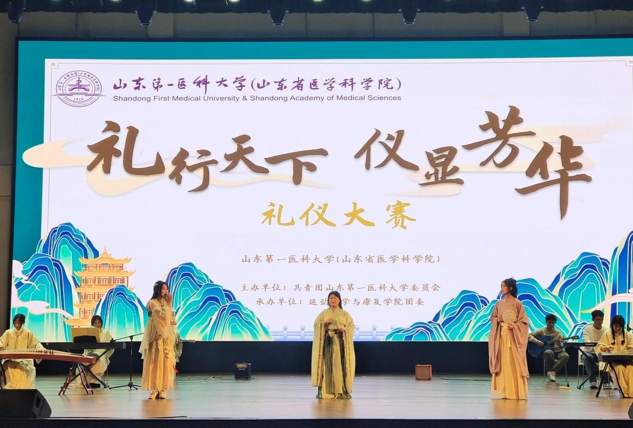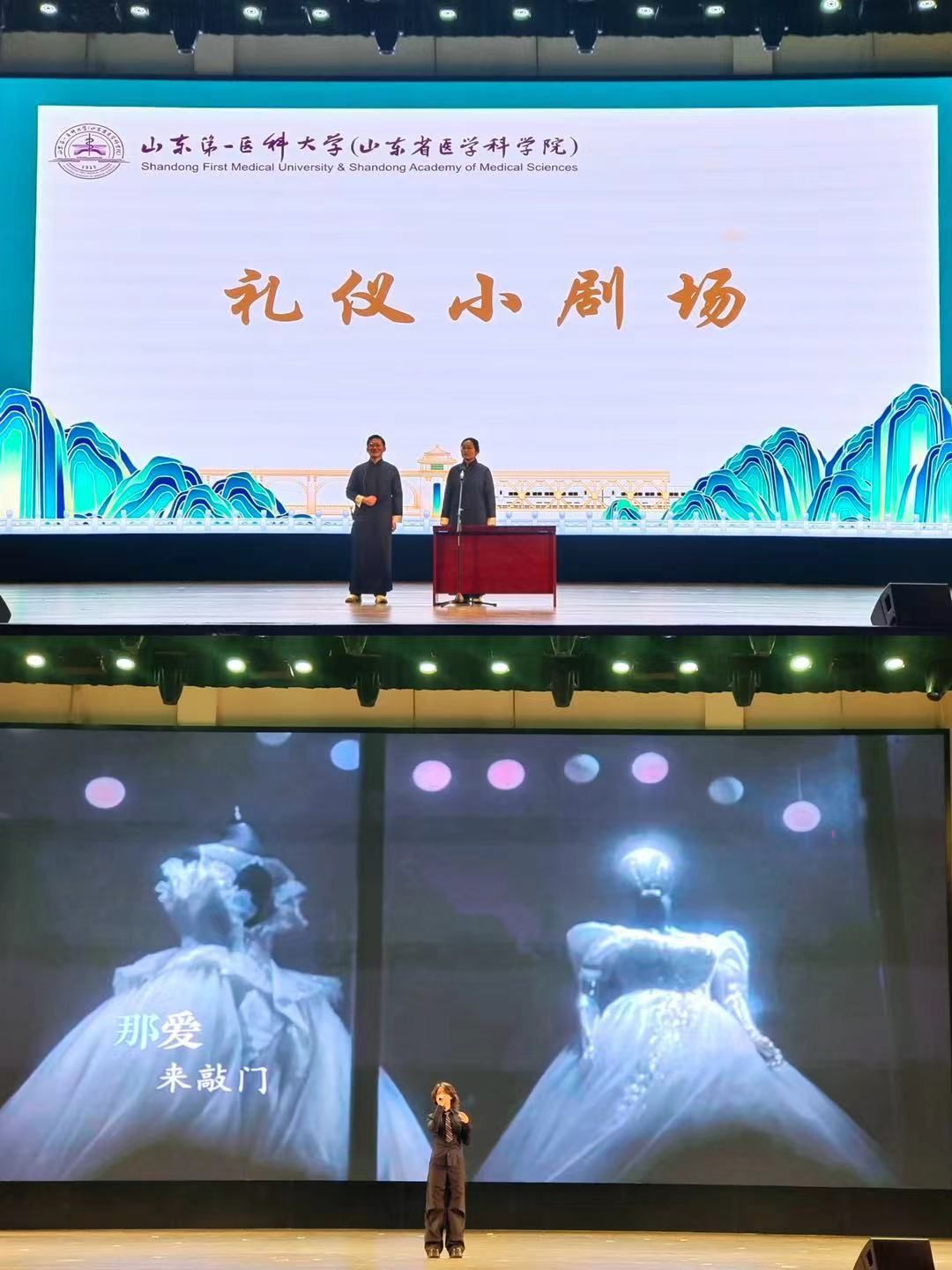在赛场休息阶段,蒋俊精和霍静媛同学的相声表演《礼仪漫谈》,覃芷琪同学歌唱的《晚婚》,以及华夏未央汉服社的汉服走秀,让现场观众进一步“身陷”这场礼仪盛典之中。
