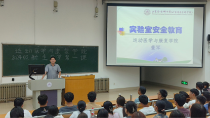 实验室主任董军老师重点强调了实验室安全的重要性,并向新生们讲解了实验室安全事故应急处理方法,同时他还全面解析了实验室规章制度,从实验准备到操作流程,再到实验后的善后工作,每一步都强调规范与严谨。他还为新生们讲解了仪器操作规范及衣着要求等,确保每位新生都能在安全的环境中开展科学实验。他强调同学们应掌握实验室安全知识,更深刻理解了安全操作对于科学探索的基石作用,为未来的实验学习铺设了安全稳健的道路。