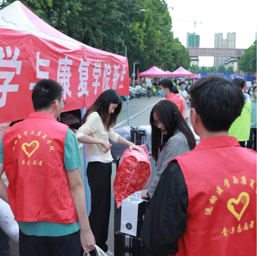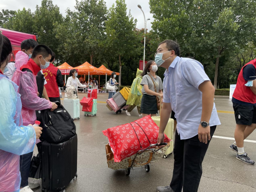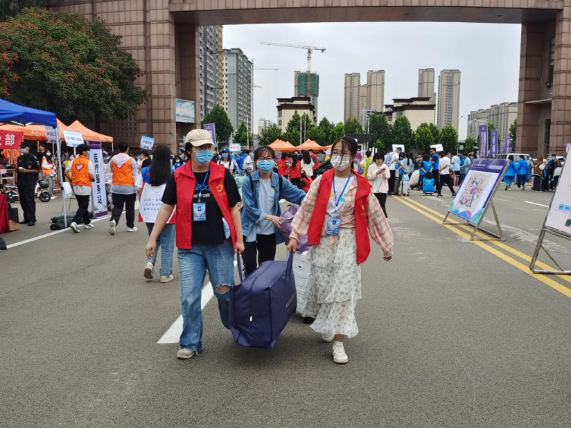 校门口,志愿者们早早等待着;接待处,院领导、专业老师及辅导员们坚持在一线,热情迎接新同学,学长学姐们亲切地引导远到的同学;寝室外,再重的行李也挡不住志愿者的热情……