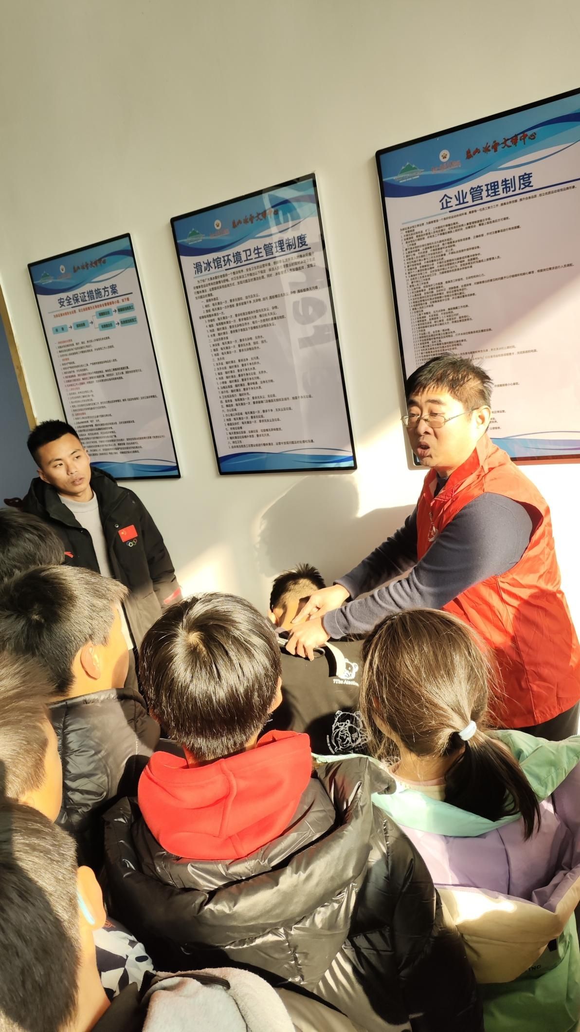 1月18日,公司组织老师赴泰安冰雪嘉年华运动员训练基地与泰安市农高区管委会、公司实践教学单位以及公司2016级优秀毕业生殷海东教练进行运动康复专业招生宣传,实验中心主任董军实地为运动员讲授运动康复专业知识,深受运动员们欢迎。