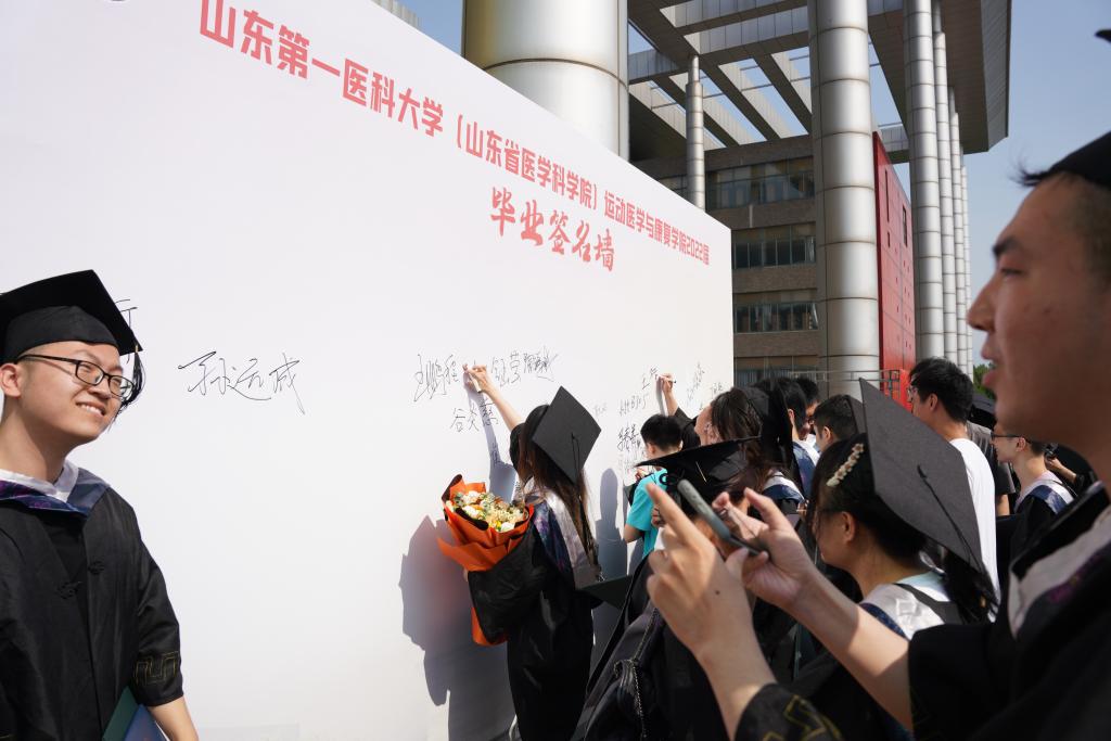 典礼最后,全体师生齐声高唱《歌唱祖国》,祝福我们的祖国永远繁荣昌盛!典礼结束后,毕业生们到毕业签名墙上留下的自己名字和对校(院)美好的祝福。