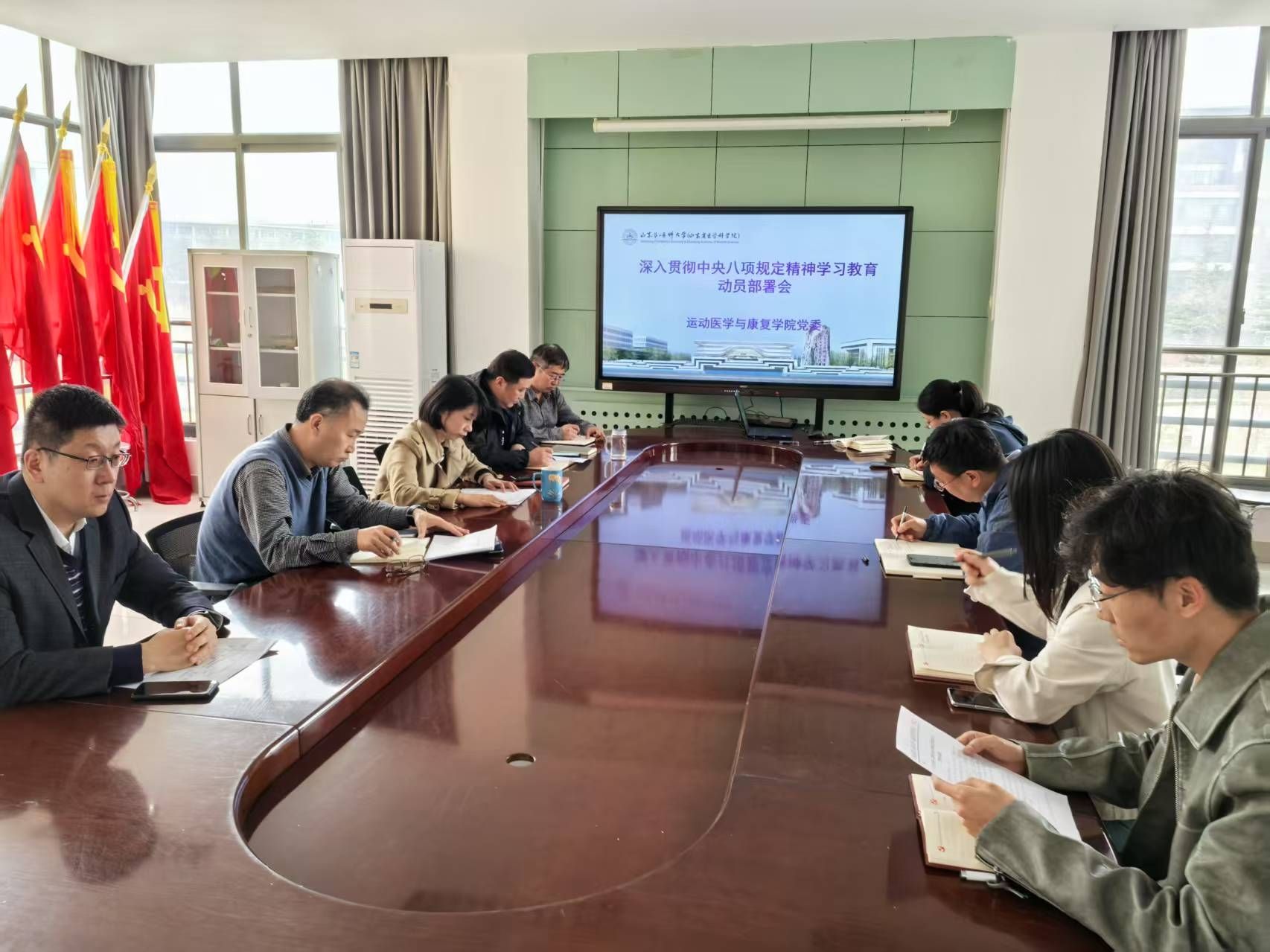 公司研究生党支部,员工第一、二党支部联合在医学技术楼西阶梯教室A334召开深入贯彻中央八项规定精神学习教育部署会。