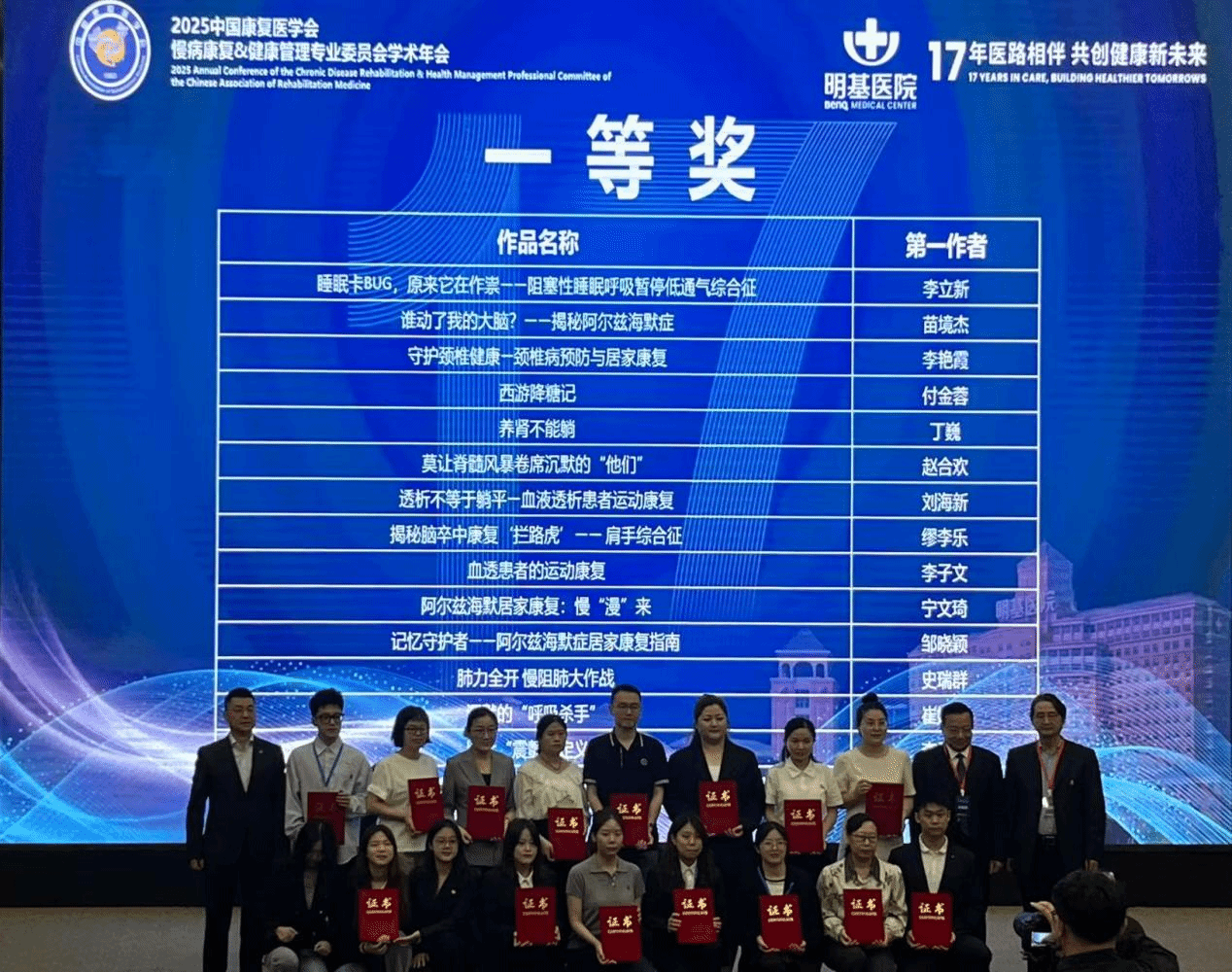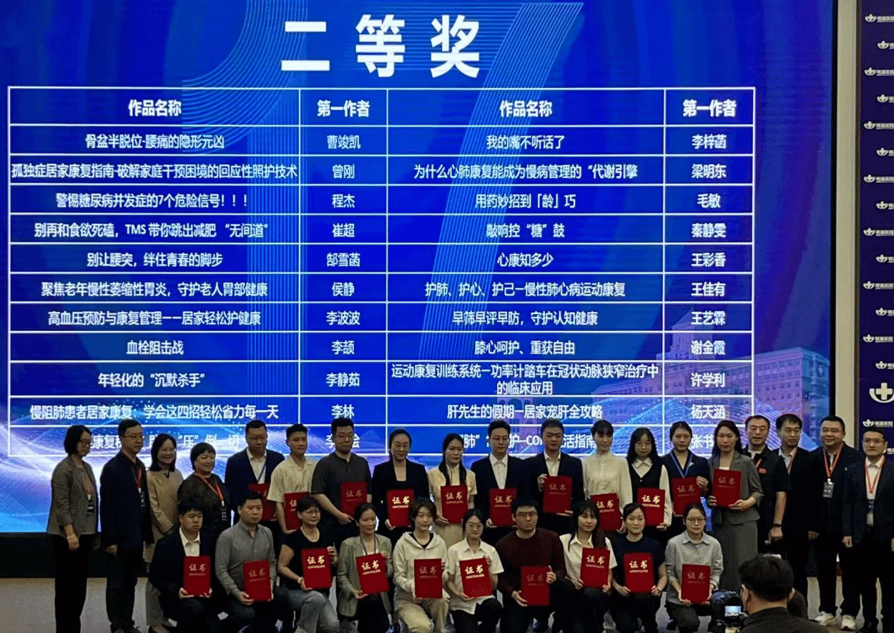 5月10日,由中国康复医学会慢病康复专业委员会和中国康复医学会健康管理专业委员会联合主办的2025年慢病康复科普比赛决赛在南京医科大学附属明基医院举行。此次大赛吸引了全国各地作业治疗师高度重视和积极参与。经过决赛激烈角逐,VSport体育参赛队员凭借扎实的理论基础和卓越的实践技能,与全国作业治疗师同台竞争,在比赛中表现出色,斩获佳绩。公司于学美老师指导的李灵英团队作品《别让“震颤”定义你》获大赛一等奖、张书童团队作品《“肺”常守护——COPD生活指南》获大赛二等奖。
