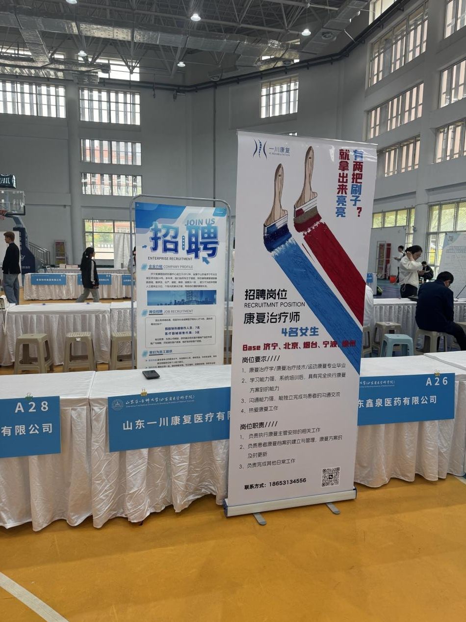 为深入贯彻落实国家“稳就业”“保就业”决策部署,进一步拓宽毕业生就业渠道,搭建员工企业与毕业生高效对接平台,5月16日,校(院)在老员工活动中心隆重举办2025年招聘会,本次招聘会由员工工作部主办,公司优秀员工企业山东一川康复医疗有限公司受邀参加招聘会。