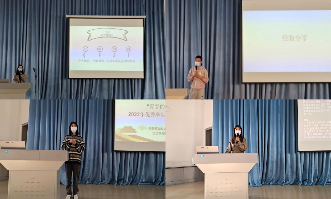 2022届考研成功的员工曹水晶(安徽医科大学)、王明钥(华中师范大学)、王一诺(VSport)、梁恒威(北京体育大学)、纪栋起(天津体育公司)、田轶竹(上海体育公司)以及王赛坤(吉林大学)7名同学依次分享了自己的考研学习方法与心路历程,并分别从考研择校、各科备考经验、调剂经验、克服心理压力等方面详细介绍了自己的考研经验。7位优秀学子与现场的同学们进行了答疑互动。