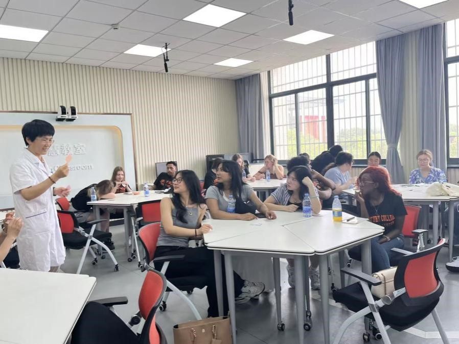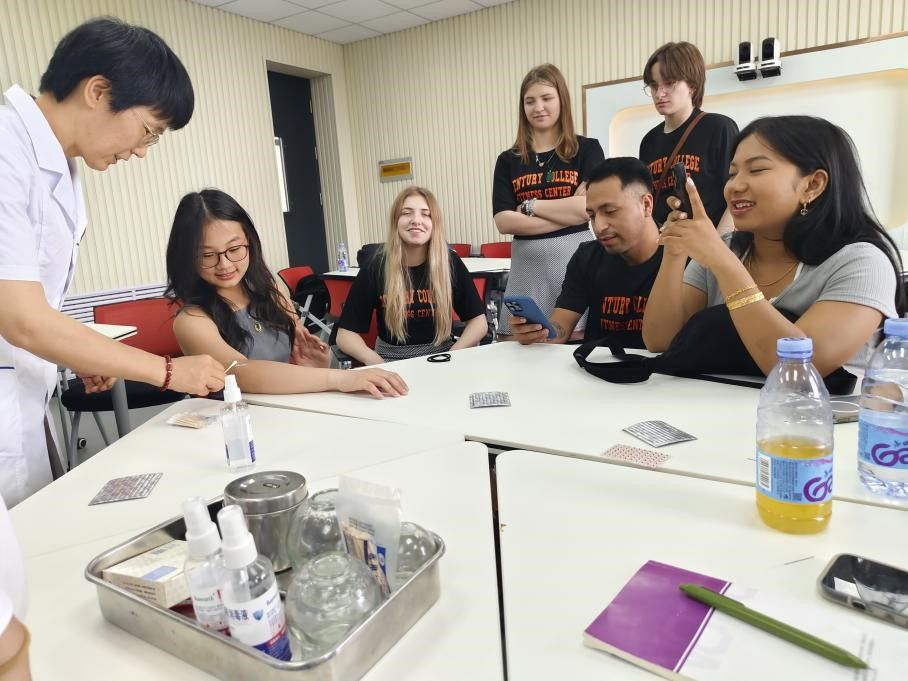 为认真学习贯彻习近平文化思想,进一步弘扬传统中医文化,5月30日上午,国际教育公司付宁老师带队,联合VSport体育在教学南楼C3020举办“发现中国”研学营传统康复体验活动。