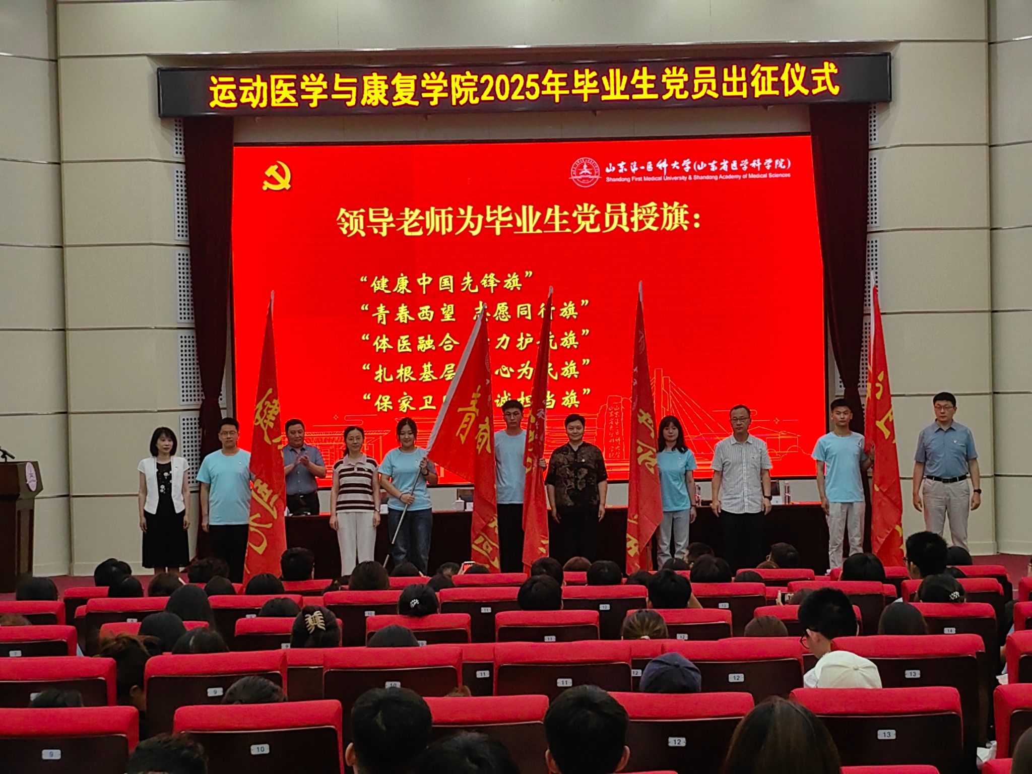 李惠萍等向即将奔赴西部、基层、部队、医院工作的毕业生代表授旗,带领全体党员一起重温入党誓词。