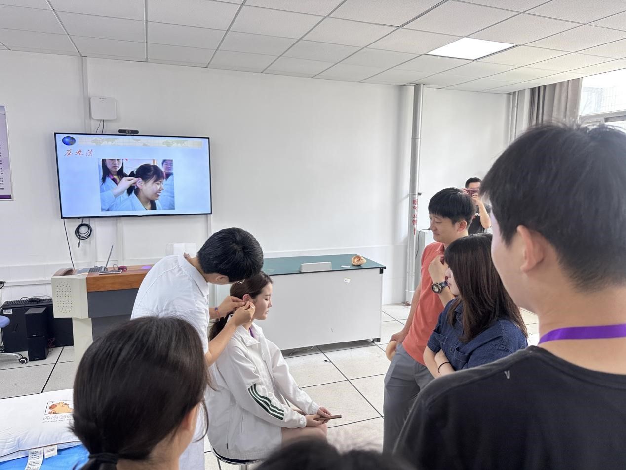 中医康复课程则带领韩国学子们推开了中医文化的大门。山东省名中医、公司传统康复教研室主任王红艳教授通过课堂教学和现场操作,多形式、多方位、多元化地向韩国员工们展现了包括针灸、拔火罐、耳穴等传统康复技术,同学们亲眼见证,亲身体会了中医文化的神奇,分别体验了针灸、耳穴、拔罐等。