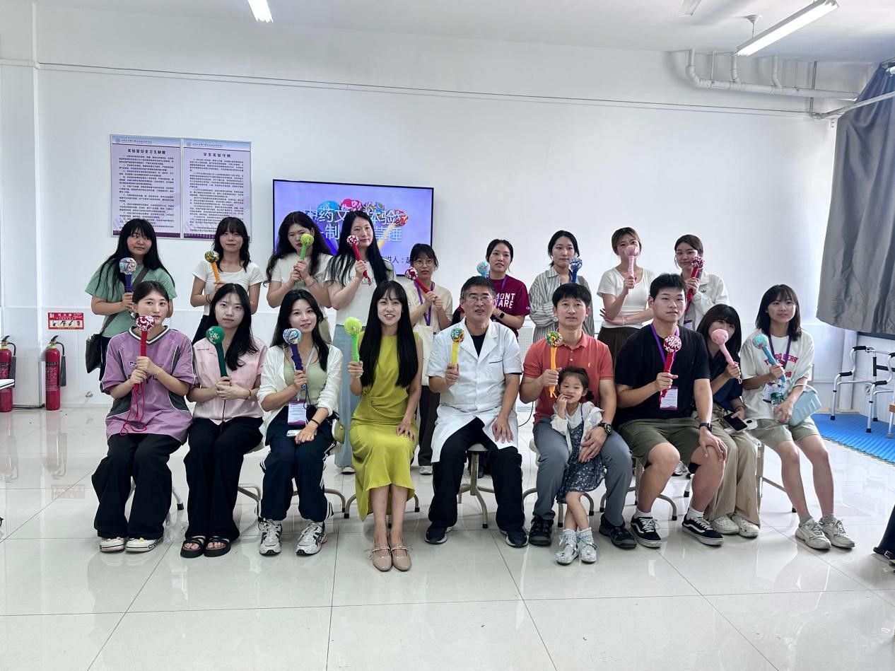 在中药文化体验课程——制作艾草锤的课堂上,公司辅导员赵晨带领韩国员工亲手制作艾草锤:挑选干燥的艾草、整理成束、用棉布包裹、系紧绳结……每个人都专注地打磨着自己的“专属养生锤”,有人还特意在锤柄上系上彩色绳结,当作独特的纪念。制作完成后,全体师生一起学习配套健身操:用艾草锤轻敲肩颈、腰腹、小腿,配合呼吸节奏舒展身体,清脆的敲击声与欢笑声交织在一起,成了课堂上最动听的旋律。