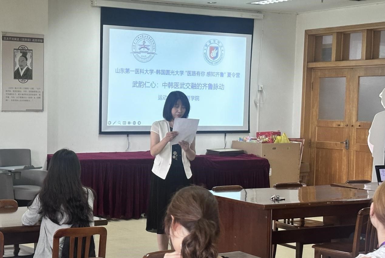 公司党委书记孙建翠对韩国圆光大学员工的到来表示热烈欢迎并作了相关致辞。为了让韩国老员工们更深入地感受中国优秀传统文化的魅力,公司精心设计了一系列特色课程,包括中国传统武术文化,中医康复课程,中药文化体验课程——艾草锤的制作与健身操等活动。孙建翠在欢迎仪式上表示“希望这次活动能成为大家认识中国,感知东方智慧的窗口。”