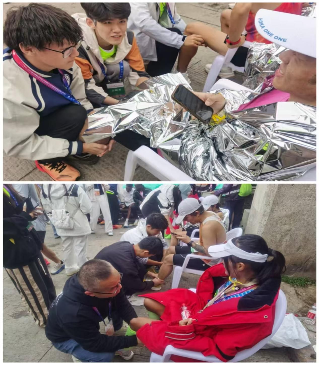在选手登山途中,志愿者们早已各就各位,分布在不同的关键点位。他们携带着医疗装备,时刻关注着过往运动员的状态变化。从为突发抽筋的选手进行专业拉伸,到为擦伤运动员进行清创包扎;从为脱水选手及时补充电解质,到用专业技巧帮助运动员调整呼吸节奏,"岱下之翼"的成员们始终以专业的处置和温暖的笑容,给予运动员最可靠的支持。在登山终点区域,志愿者们还设置了专业的恢复服务区。他们运用按摩滚轴、筋膜枪等专业设备,为完赛运动员提供针对性肌群放松服务,并指导进行科学拉伸,有效缓解运动后的肌肉酸痛。许多运动员在接受服务后纷纷表示,如此专业的赛后恢复保障让他们能够更快消除疲劳,这种贴心的服务令人难忘。主办方对“岱下之翼”青年志愿者服务队给予了高度肯定,志愿服务不是一时之举,而是长期的精神传承,志愿服务队带着温度与责任登上泰山,是新时代青年志愿者的标杆。