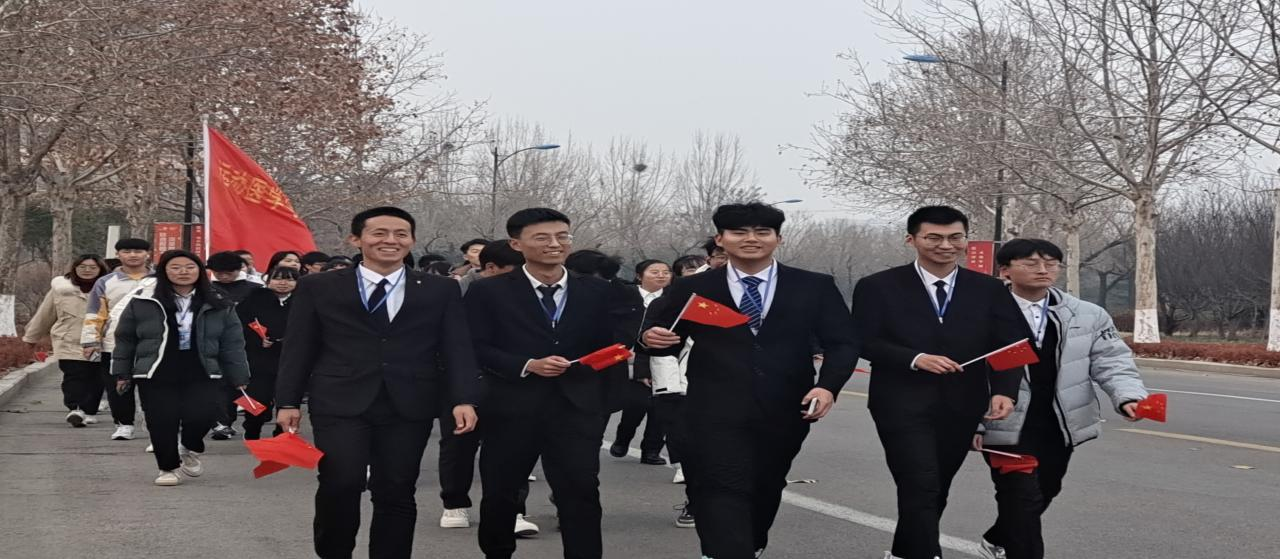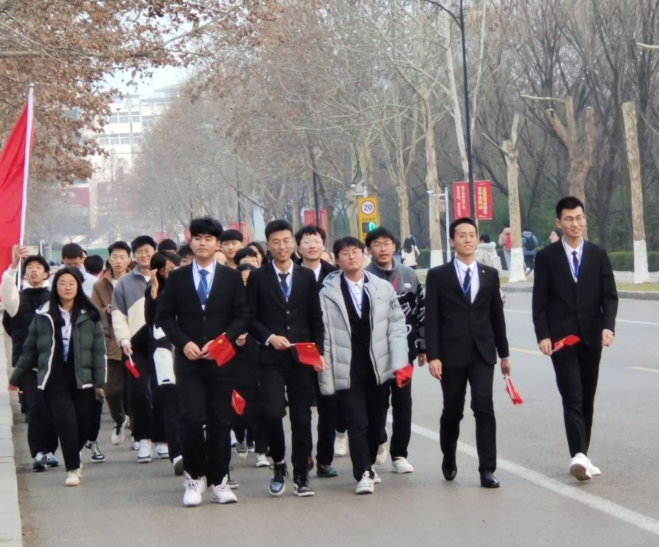 学工办主任刘志远带领同学们回顾了那段峥嵘岁月,学习了“一二·九”员工抗日救亡运动的历史背景和伟大意义,使同学们深切感受到了几十年前中国青年们热血澎湃的家国情怀。在同学们充满感情地合唱《歌唱祖国》后,随着发令枪响,活动正式开始,同学们沿南门——行政楼——老体——研究生公寓——南门的路线前进。路途中,刘志远为同学们讲述革命先烈的英雄故事,参与活动的师生欣赏着校园美丽的景色,聆听着革命先辈的英雄故事,一同谈论着新时代青年的责任与担当。
