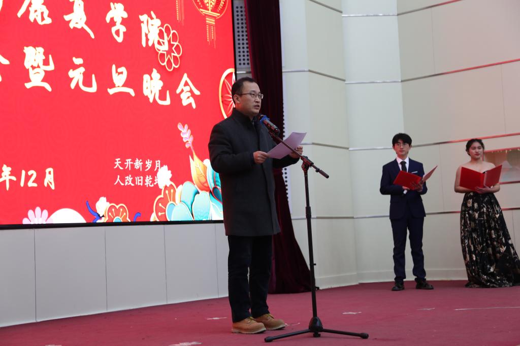 公司班子成员、系主任、各科室负责人、全体辅导员、部分师生代表等300余人参加表彰大会并观看了元旦联欢晚会。
