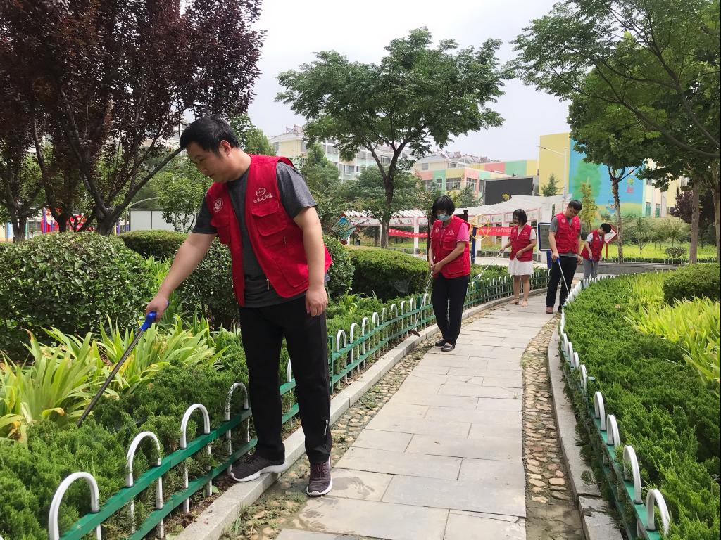 志愿者们在社区工作人员统一安排下,拿着扫把、簸箕等工具,集中对社区道路、花坛、文化广场、停车位等区域进行清理,捡拾散落垃圾、烟头,清理小广告,铲除杂草,对雨后积存污水进行倾倒等。同时,志愿者们积极与路过的群众讲解疫情防控知识,开展文明劝导,让群众了解良好的生活环境对自身健康的重要性。