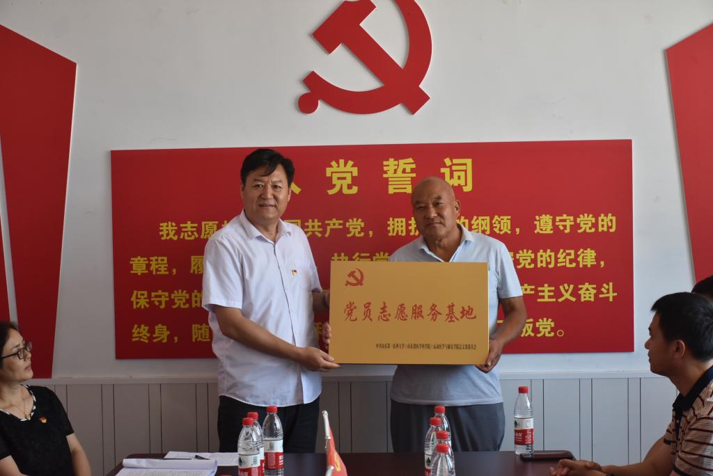 公司党总支书记亓建洪和大刘村党支部书记刘恩现共同为党员志愿服务基地揭牌。公司经理贾庆卫代表公司向丁庄镇卫生院捐赠一批康复器械,向大刘村捐赠口罩等防疫物资。全体党员面向党旗重温入党誓词,举行了庄严的宣誓仪式。