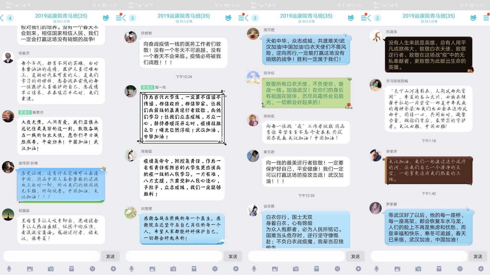 青马班成员周一鸣同学说:“深刻学习习近平总书记的回信精神后,我认为作为当代老员工,一定要相信政府,相信国家。为众人报薪者,必为人民所铭记,让我们向前线的最美逆行者致敬,向他们学习!我们必会在这场风雨中,团结一心,做你们背后最坚实的后盾。希望大家都能好好保护自己,一切都会好起来的!”