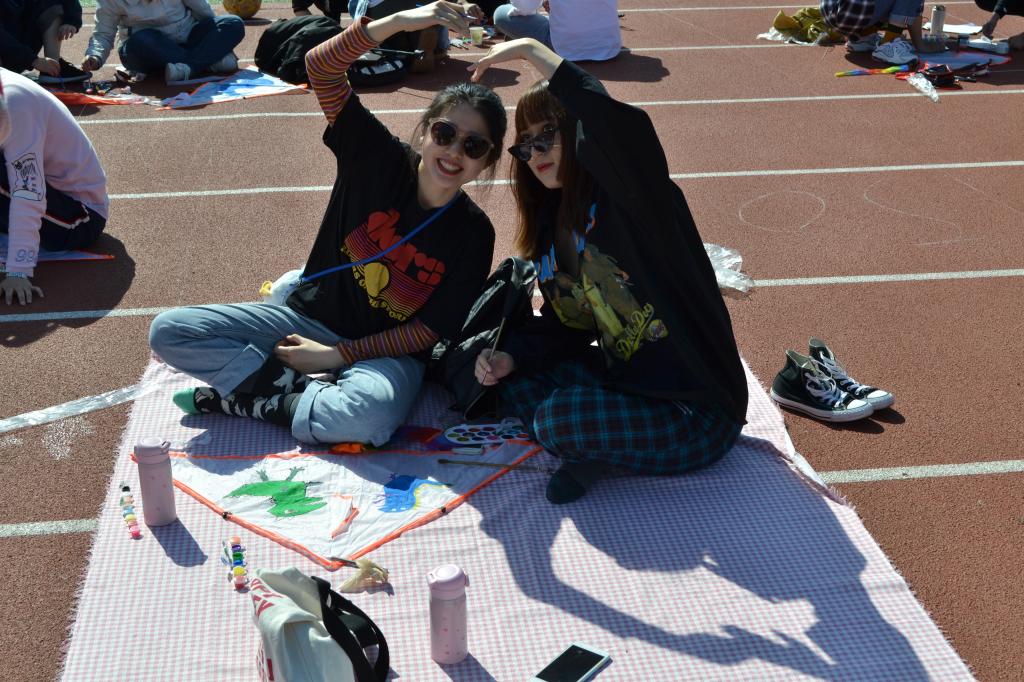 活动在欢声笑语中开始,大家很快就进入了状态,熟练的安装骨架,尽情地为自己的风筝增色添彩,忙的不亦乐乎。其中不乏技艺高超者,用画笔和颜料渲染了一幅幅色彩斑斓的风筝,一个个形象活灵活现。同学们在热情洋溢的氛围下同学们将风筝放飞到蓝天,各式各样的风筝在空中飞舞,形成了一道靓丽的风景线。